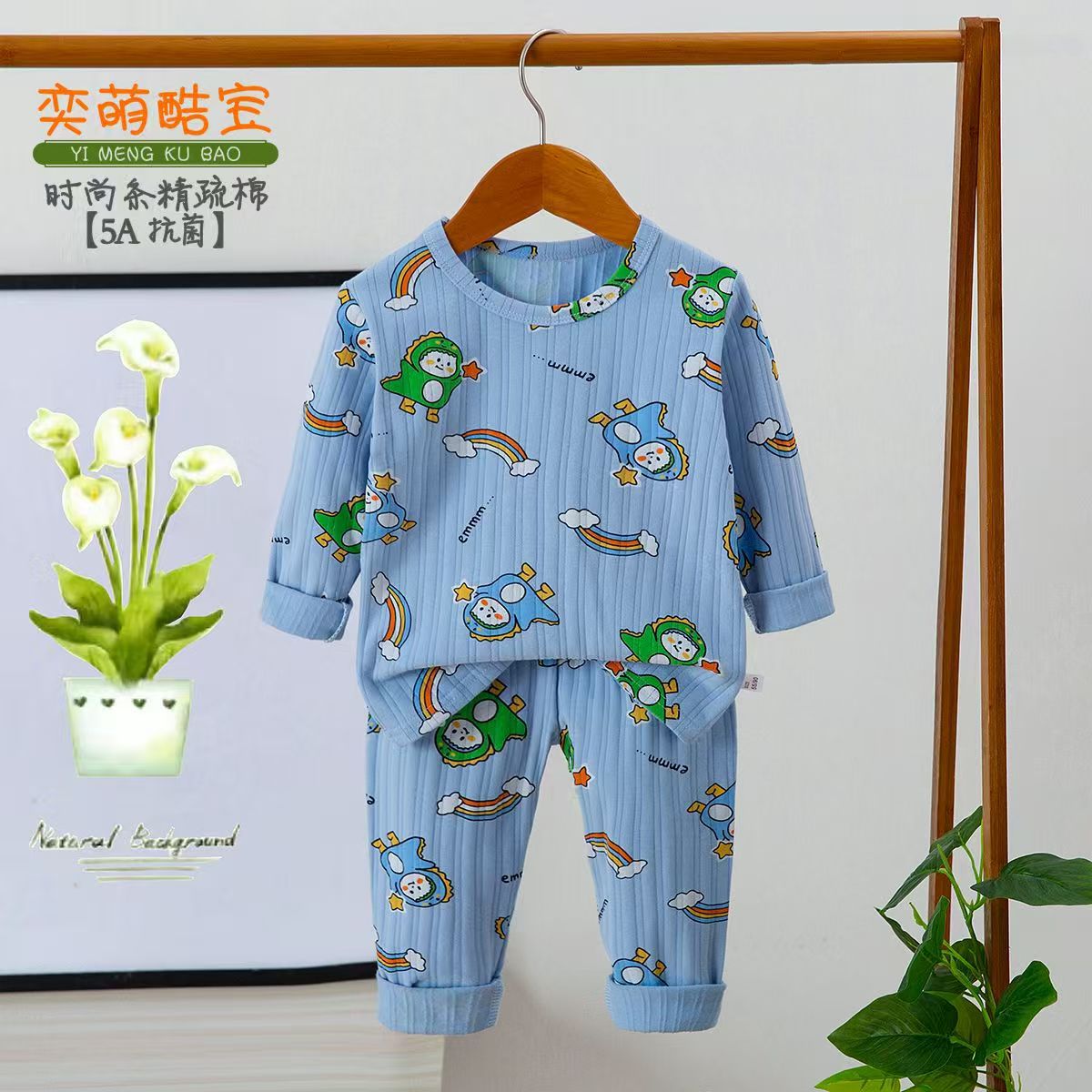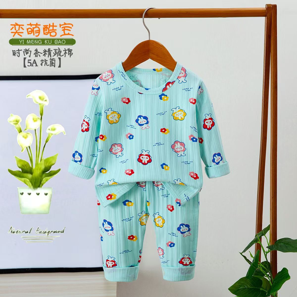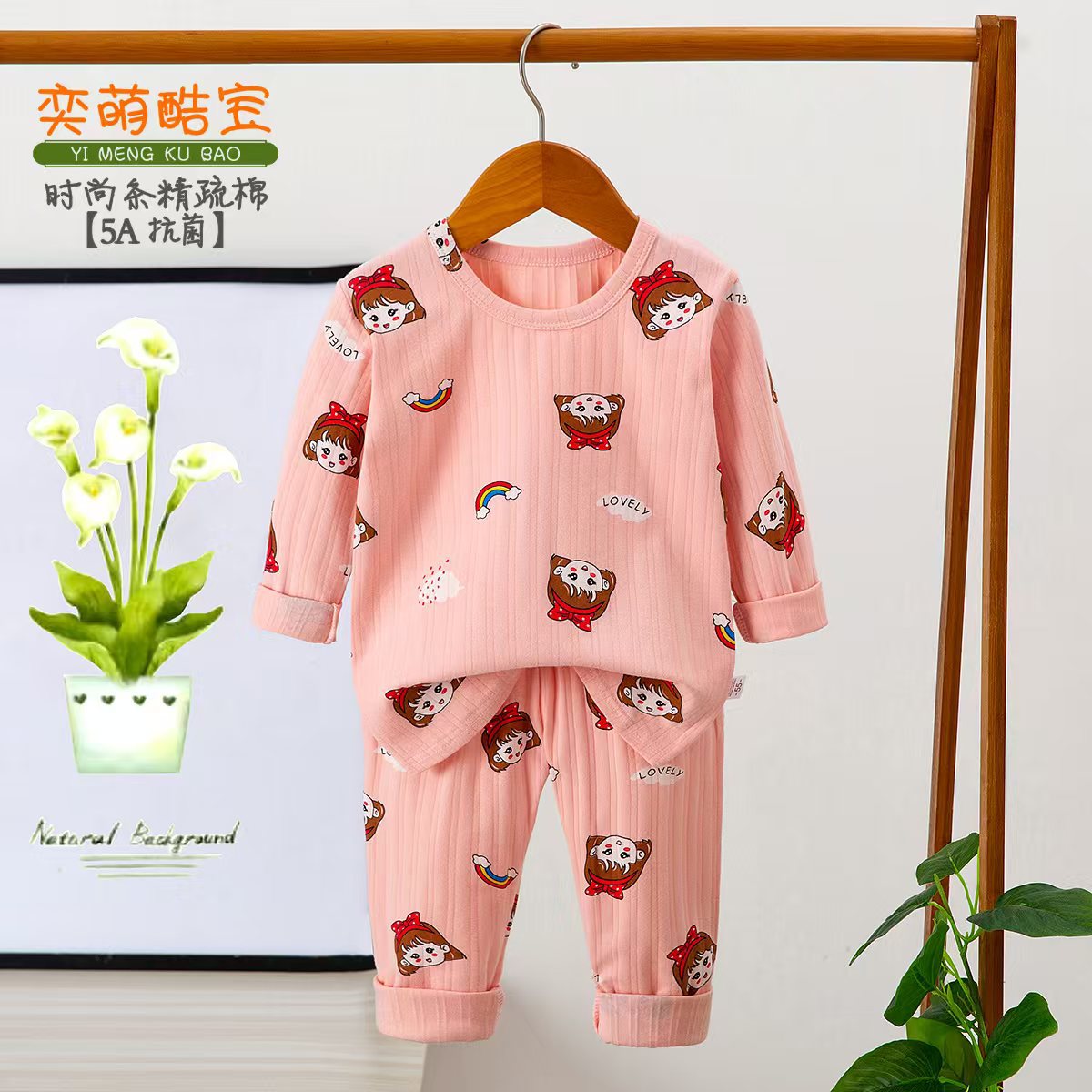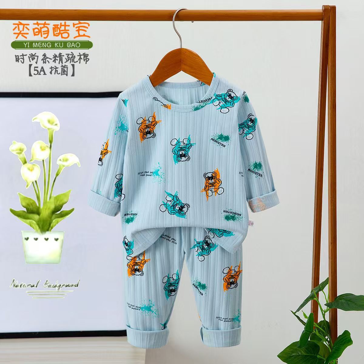 어린이 잠옷 세트 봄 라이크라 면 아기 속옷 남아 홈웨어 여아 가을옷 가을바지 어린이용스토어 가기
