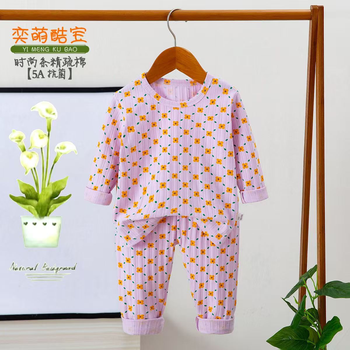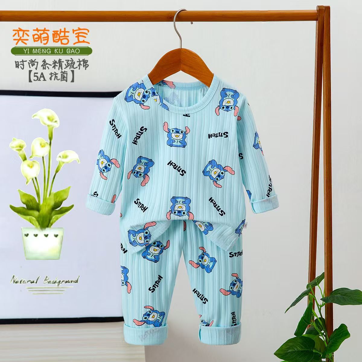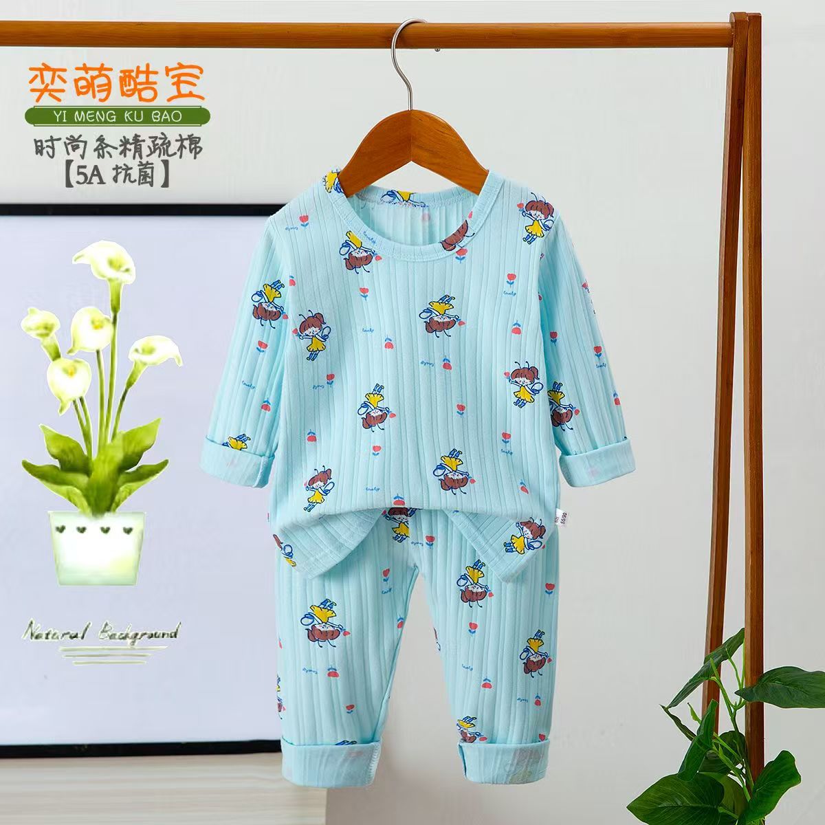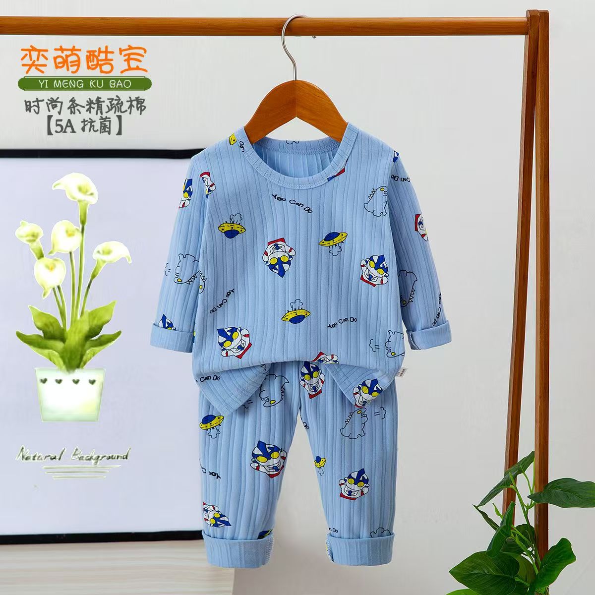 어린이 잠옷 세트 봄 라이크라 면 아기 속옷 남아 홈웨어 여아 가을옷 가을바지 어린이용스토어 가기