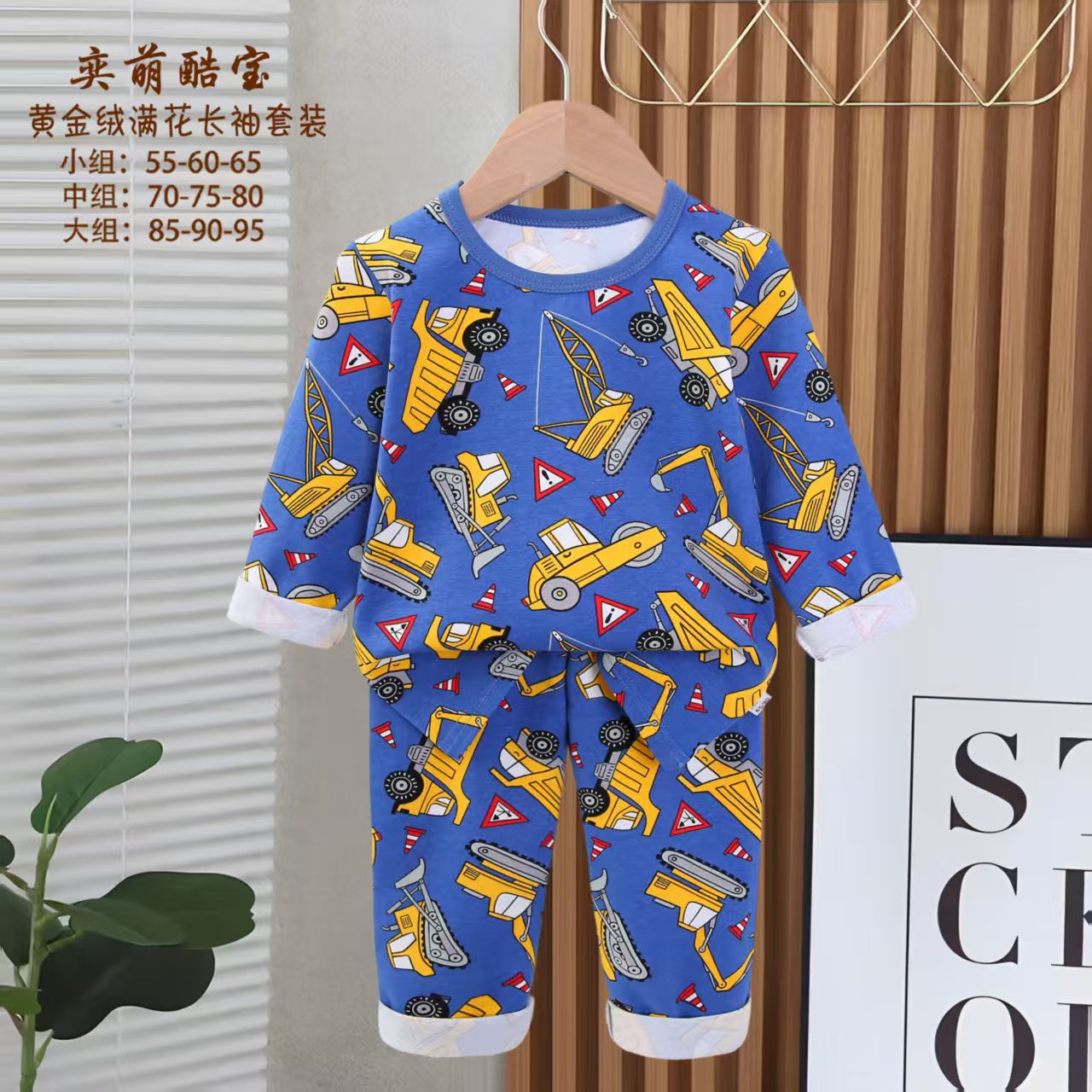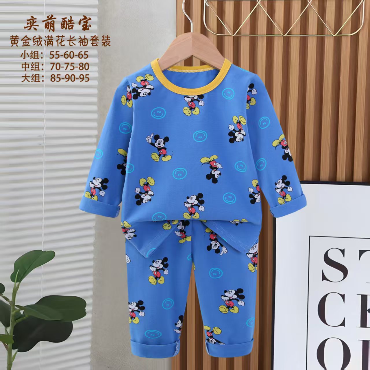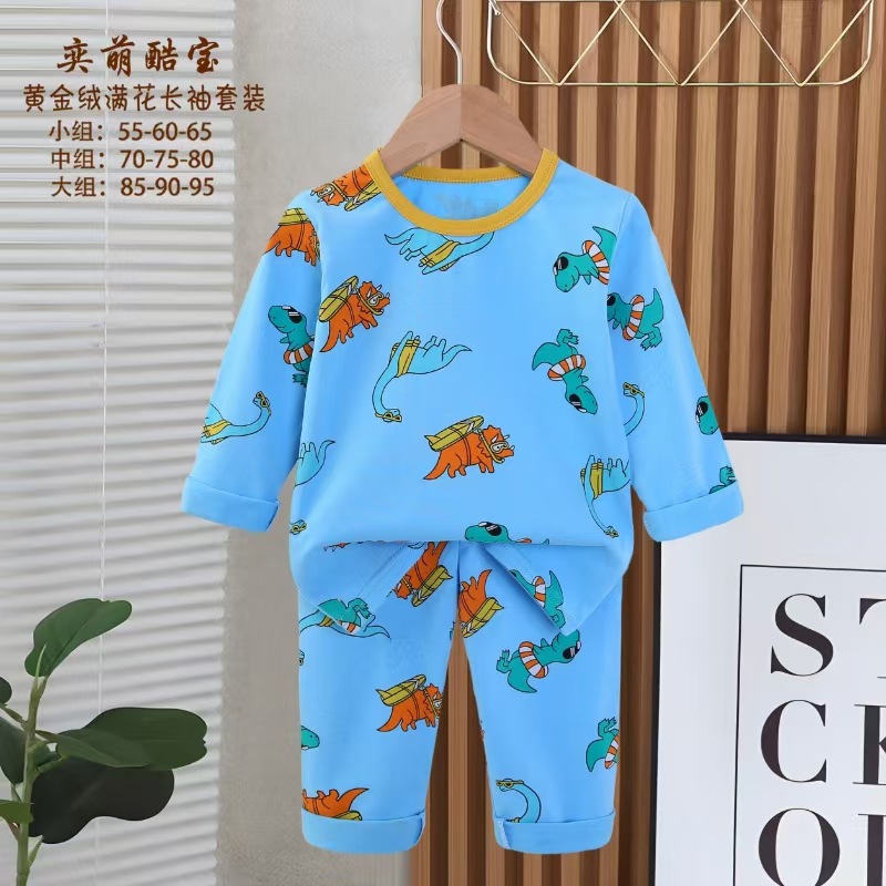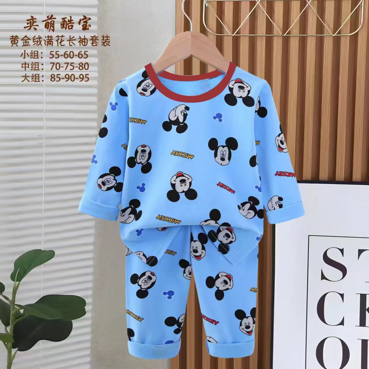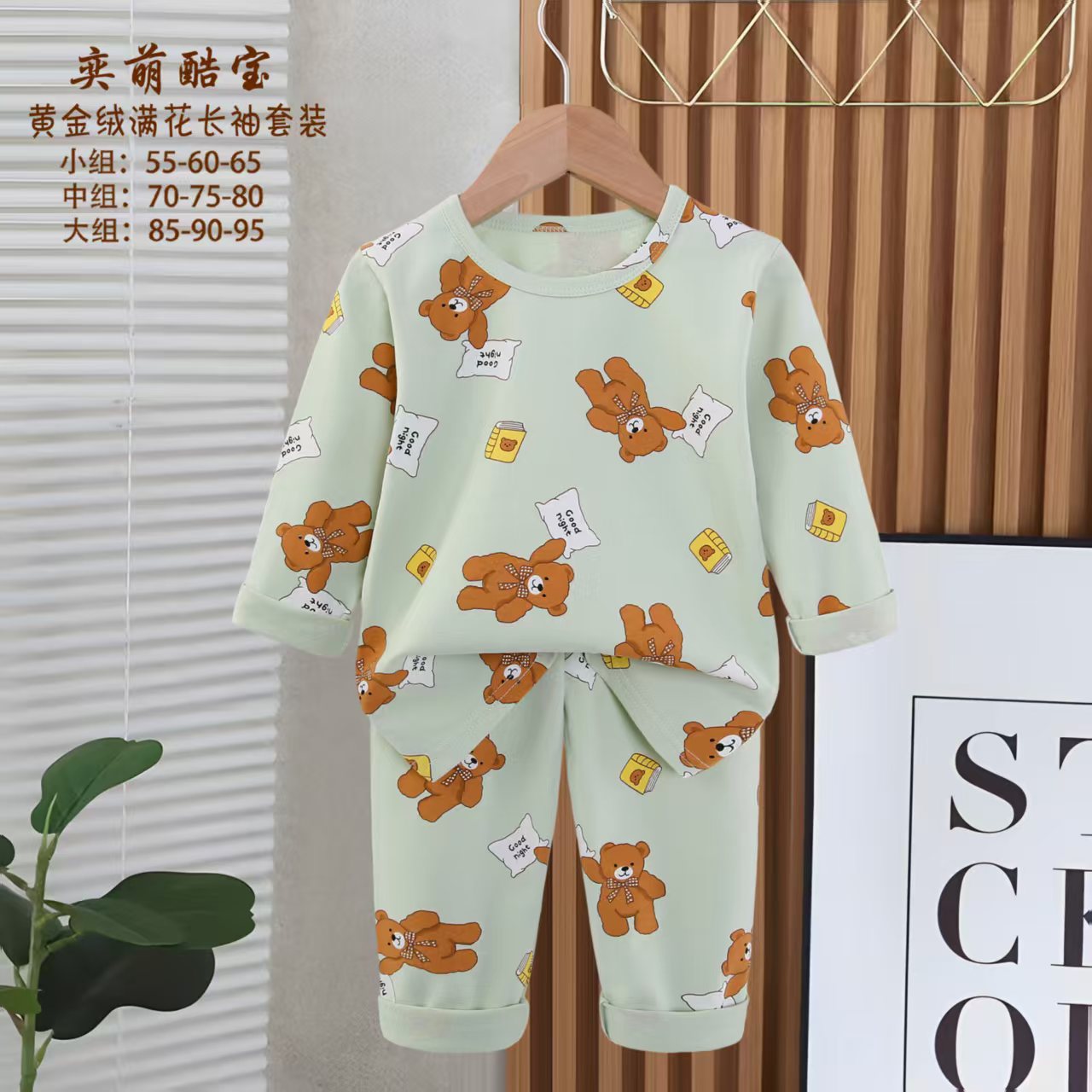 어린이 잠옷 세트 봄 라이크라 면 아기 속옷 남아 홈웨어 여아 가을옷 가을바지 어린이용스토어 가기