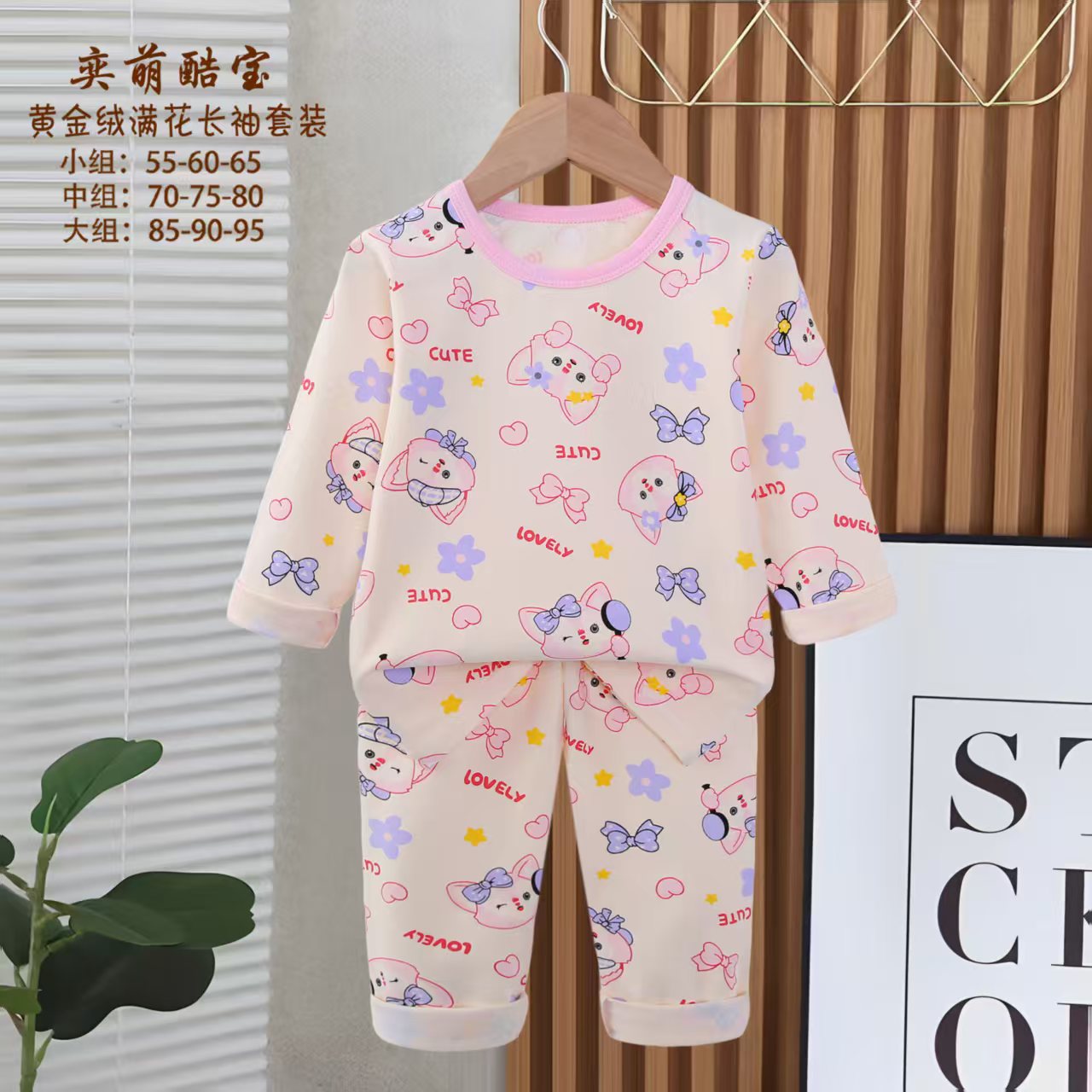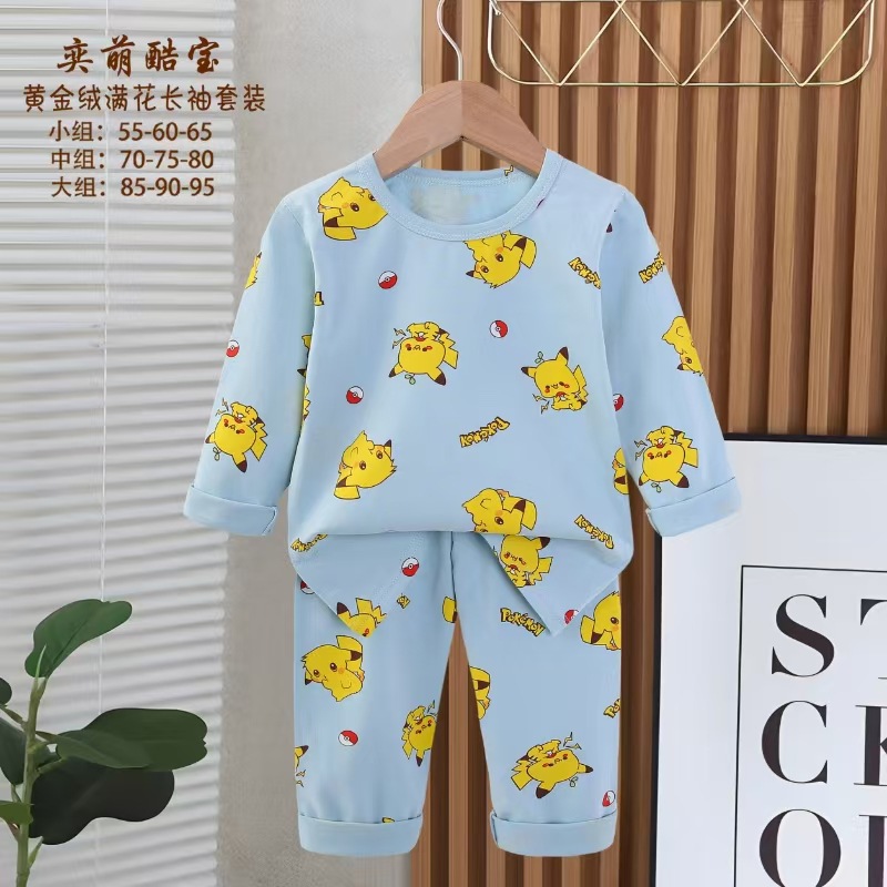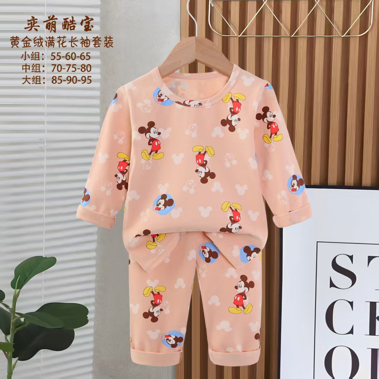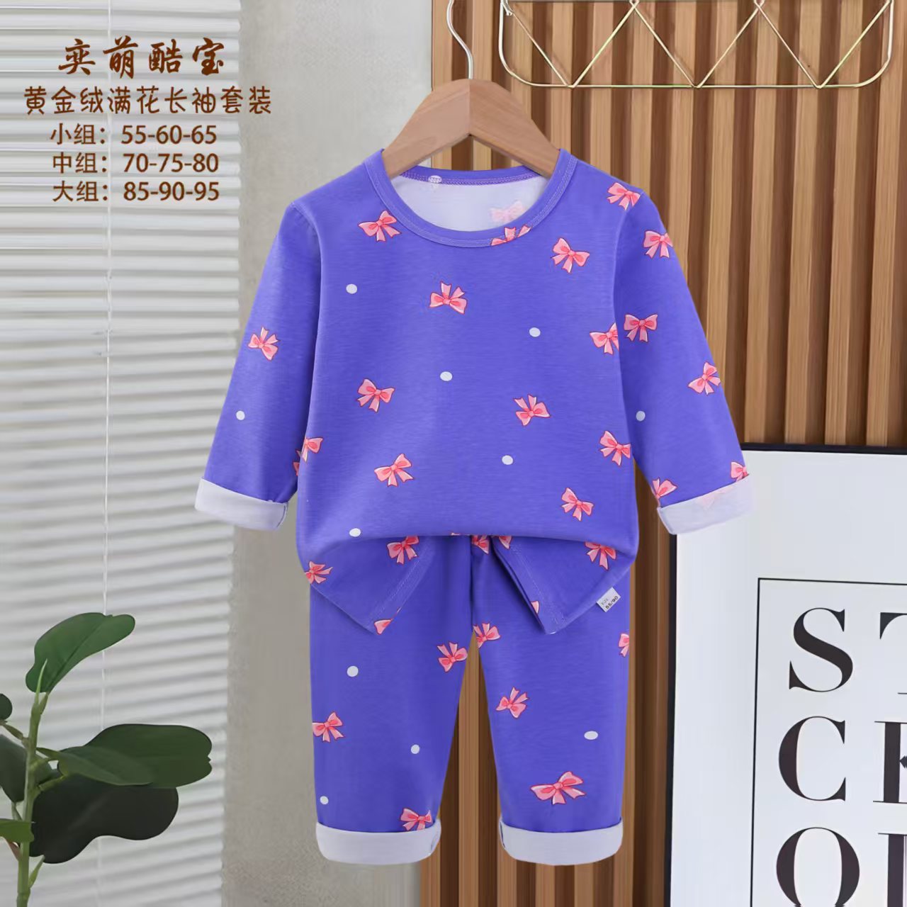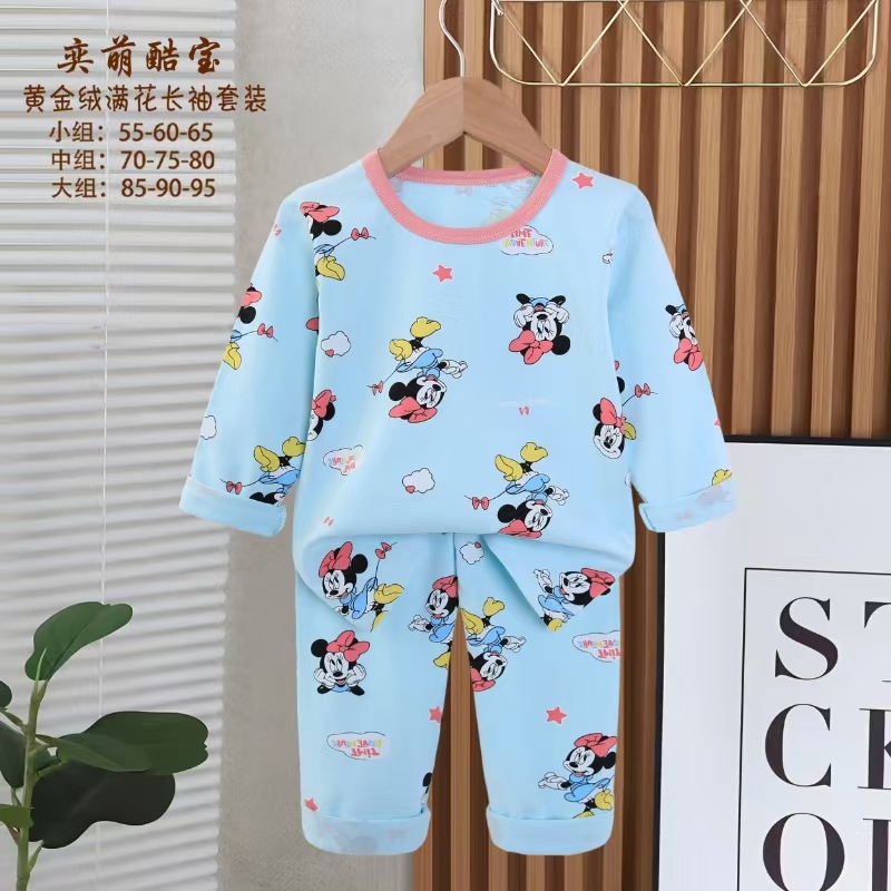 어린이 잠옷 세트 봄 라이크라 면 아기 속옷 남아 홈웨어 여아 가을옷 가을바지 어린이용스토어 가기