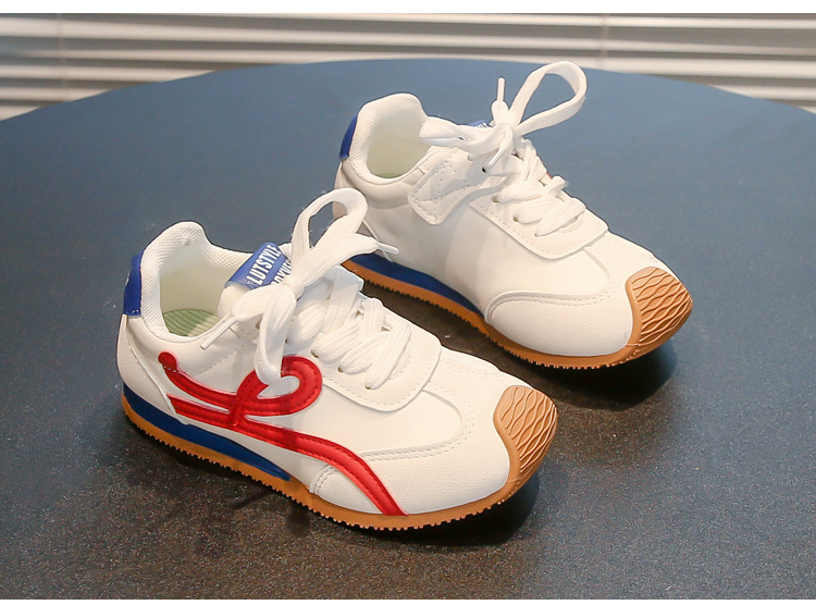 어린이 운동화 패션 봄과 여름 새로운 한국 스타일 소년 달리기 신발 가죽 소프트 솔 걸스 캐주얼 신발 싱글 레이어 신발스토어 가기