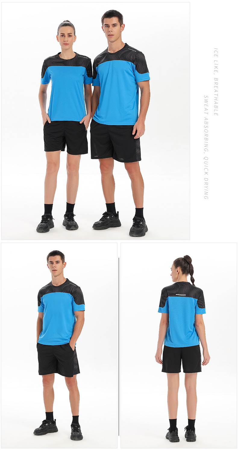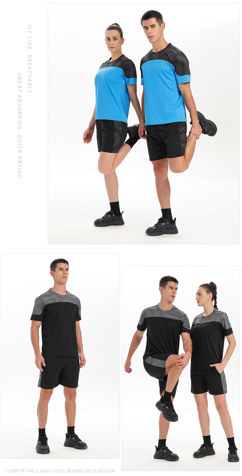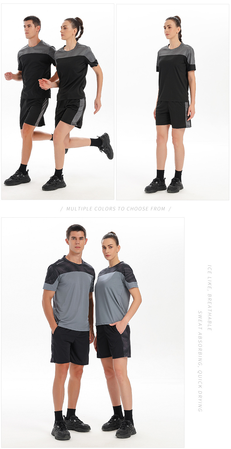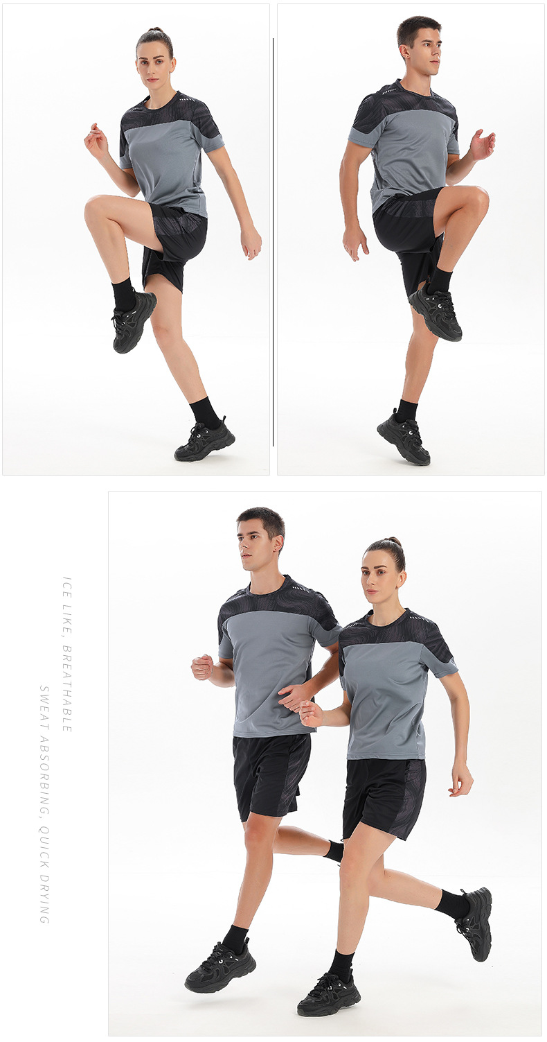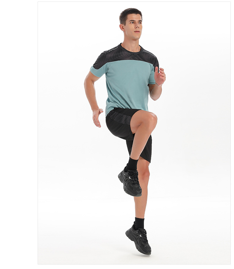 새로운 스포츠 정장 도매 남자 여름 달리기 장비 빠른 건조 의류 반팔 티셔츠 스포츠 훈련 피트니스 의류