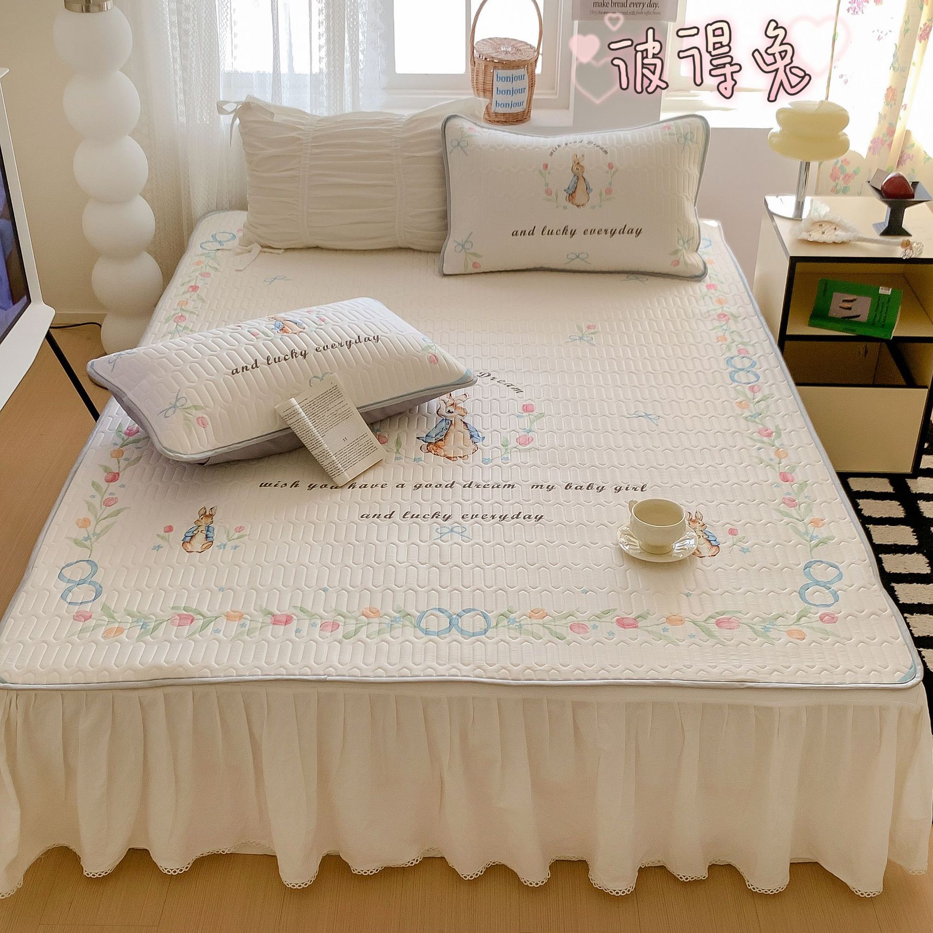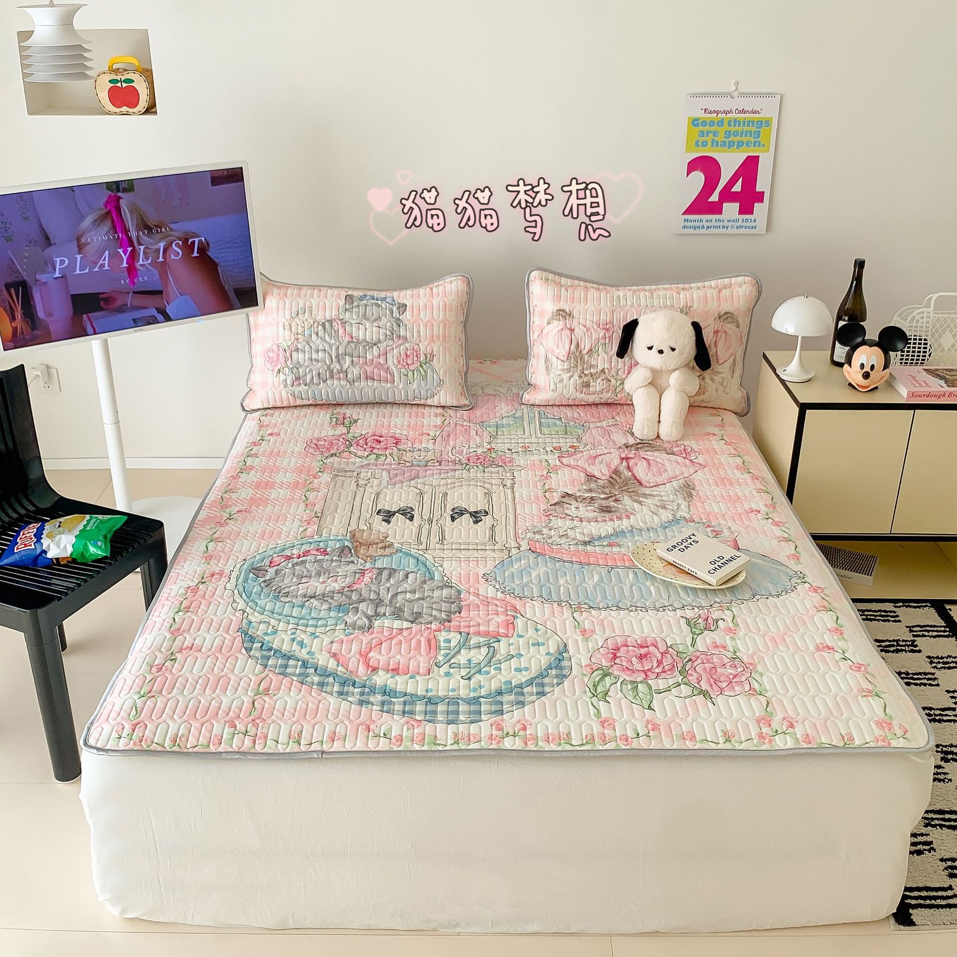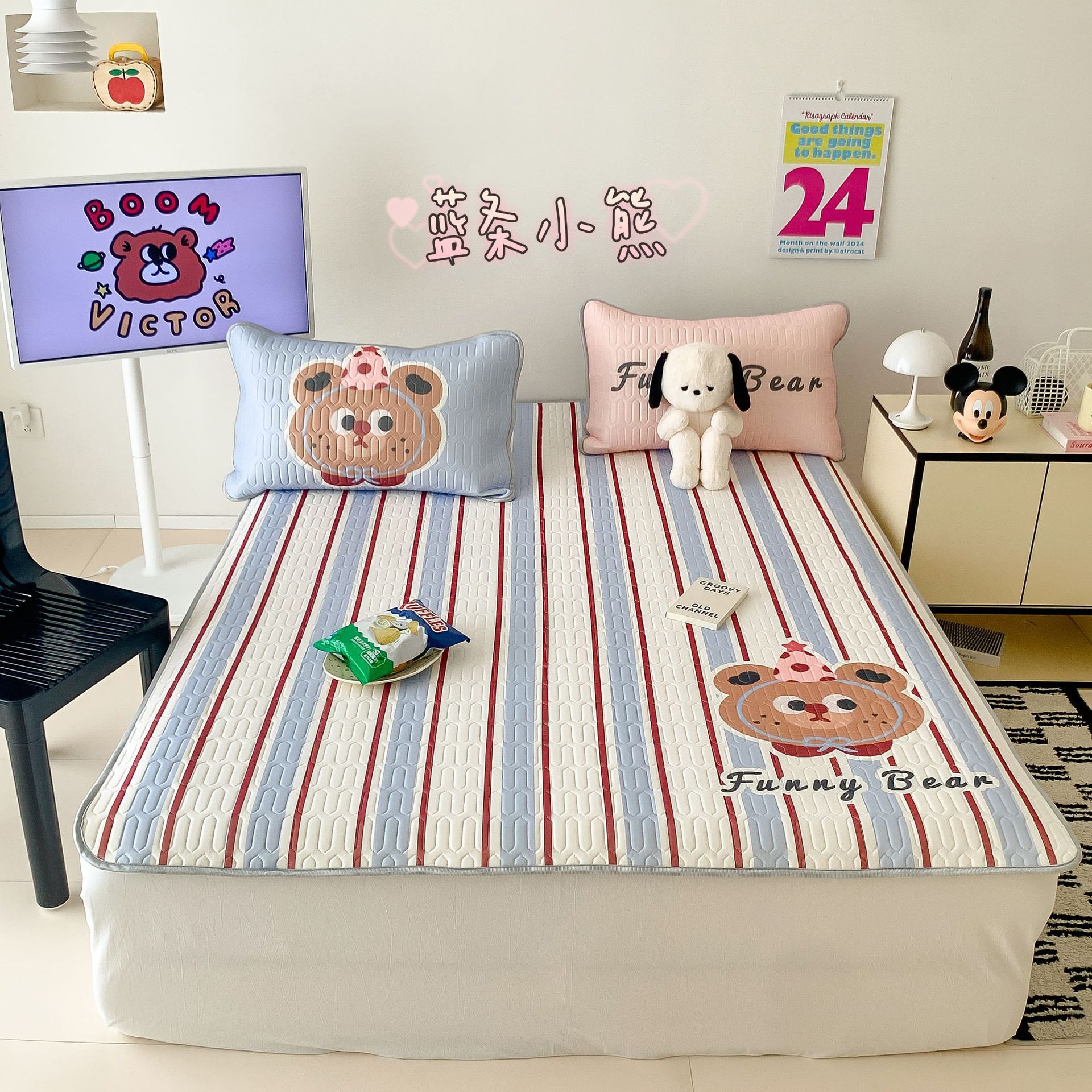고급 라텍스 매트 기계 빨 수있는 학생 기숙사 싱글 귀여운 만화 침대 3 피스 아이스 실크 건조 시원한 느낌