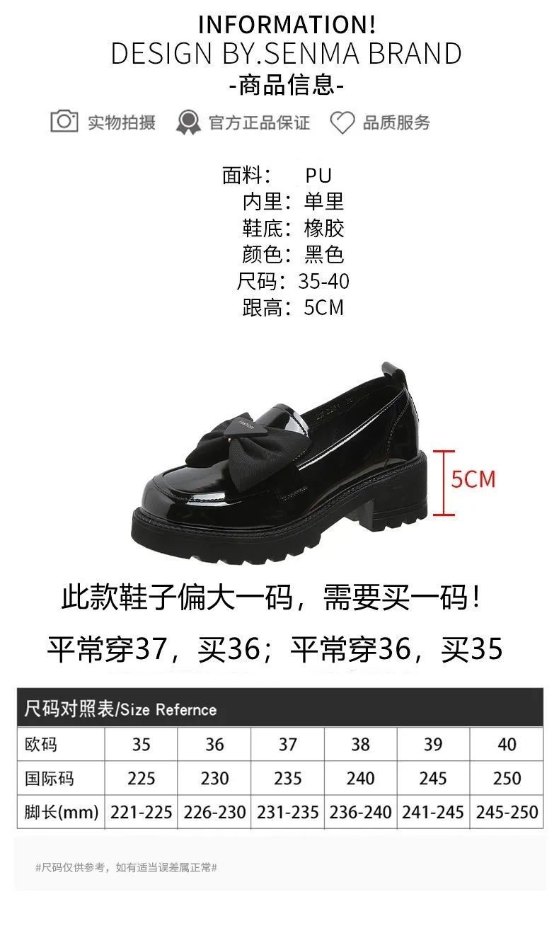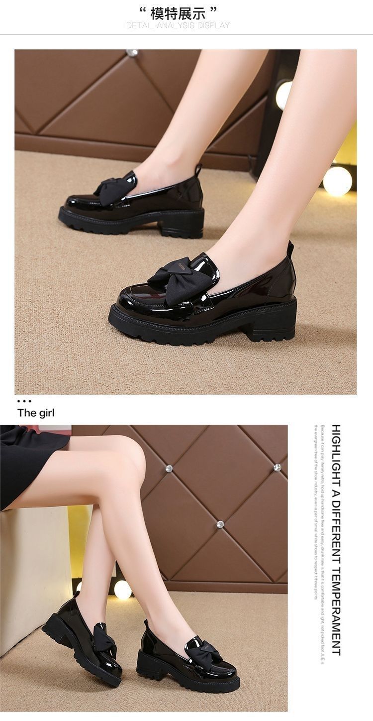 부드러운 가죽 싱글 슈즈 여성용 두꺼운 밑창 로퍼 2023 신상 여름 미드 힐 여성용 신발 작은 사이즈 여성용 리본 밝은 가죽 신발스토어 가기