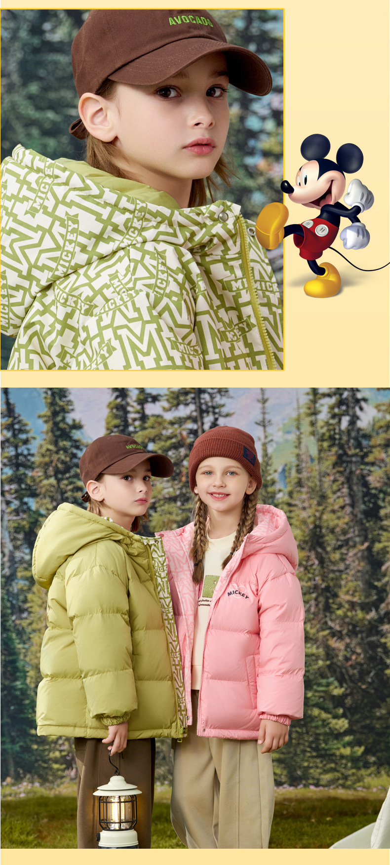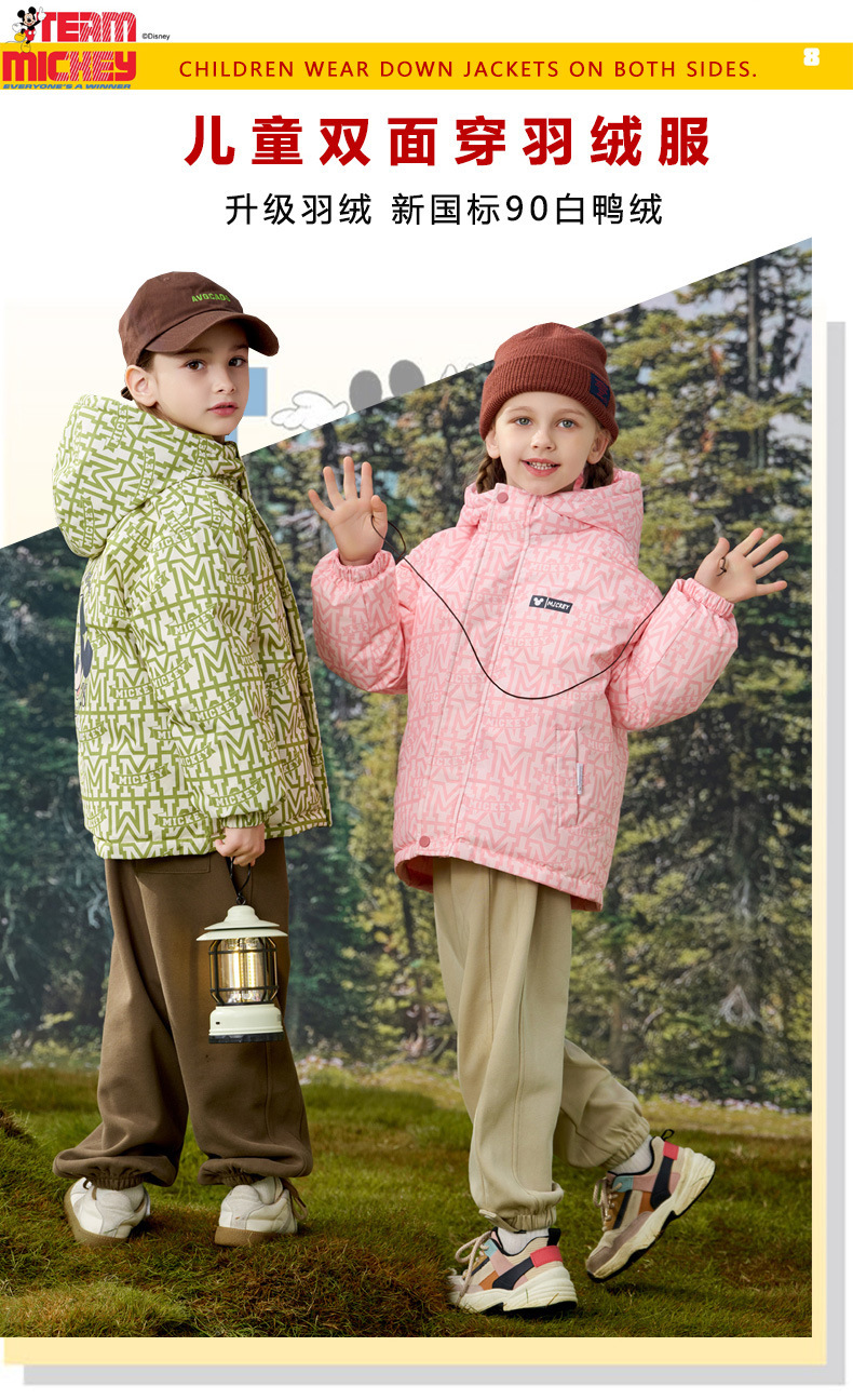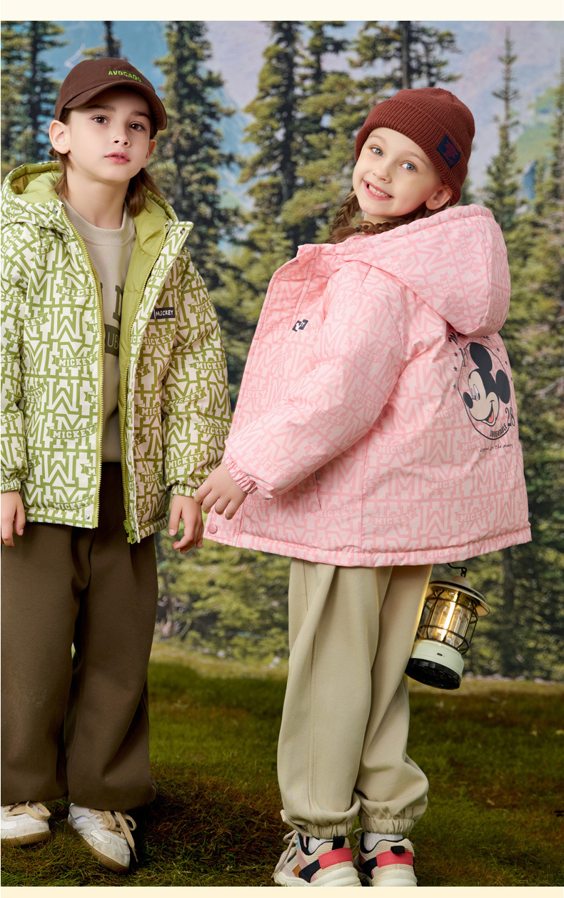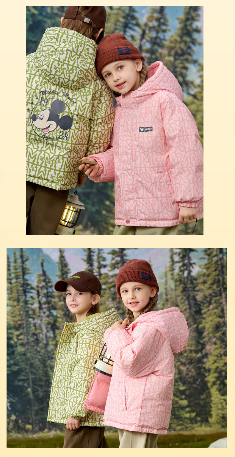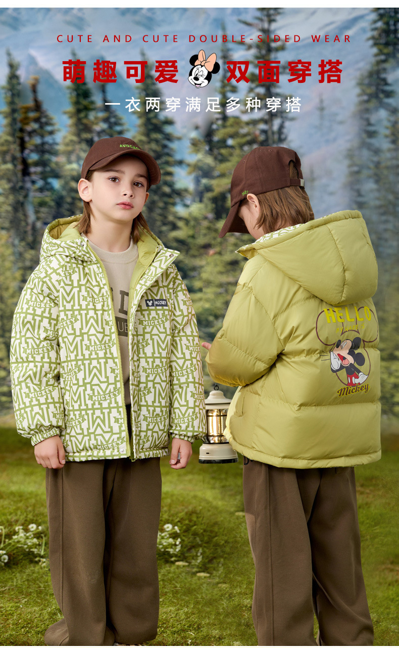 [속보] 디즈니 아동 다운 재킷 한국판 양면 프린트 두꺼운 따뜻한 후드 재킷