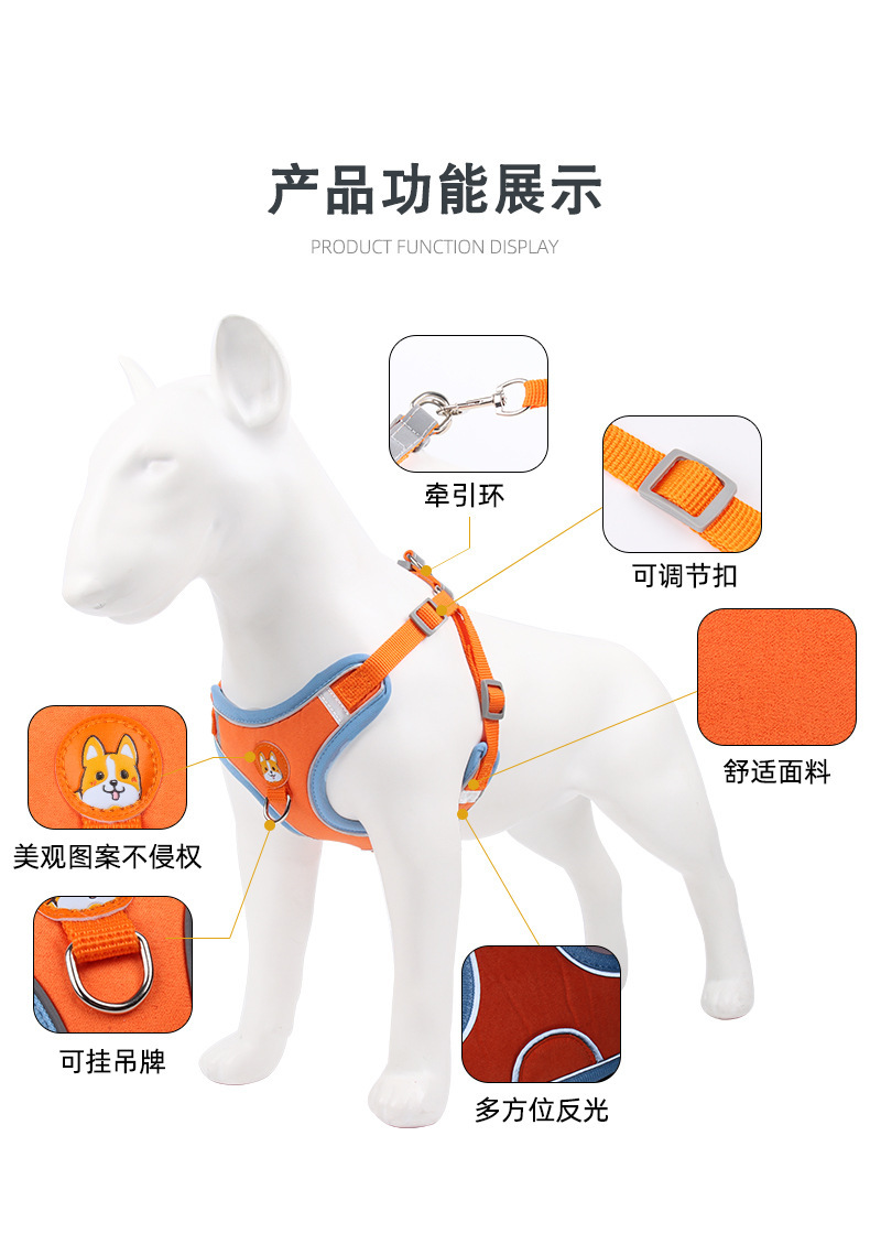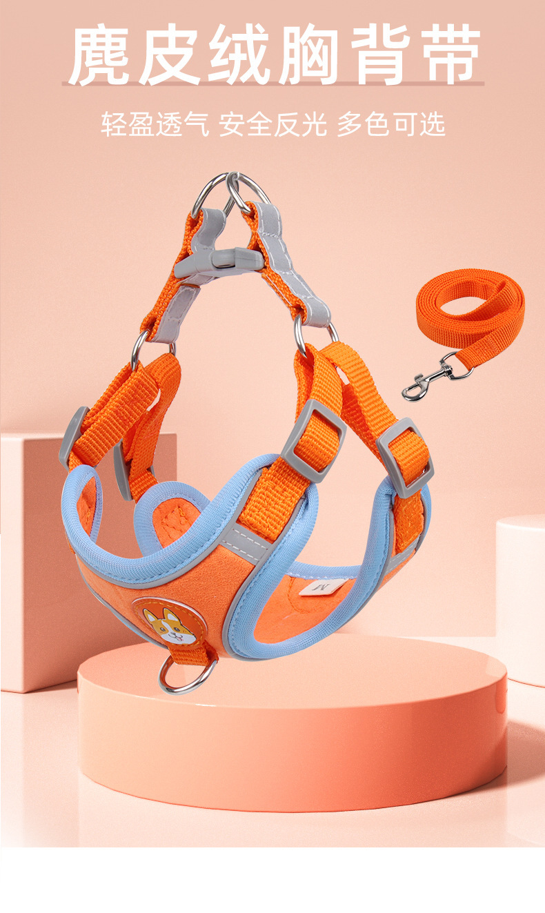 • 오렌지색 귀여운 강아지 하네스 + 같은 색상의 목줄