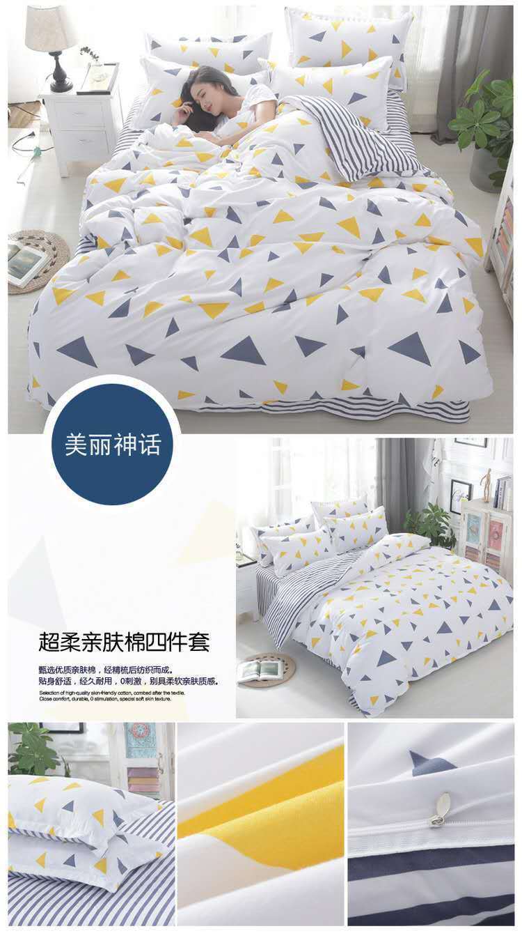 바람 간단한 격자 무늬 이불 커버 4 조각 침구 시트 단일 학생 기숙사 3 조각 도매 공장스토어 가기