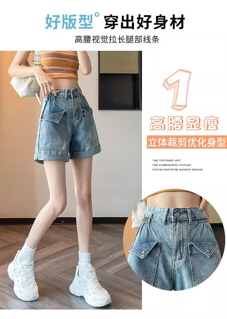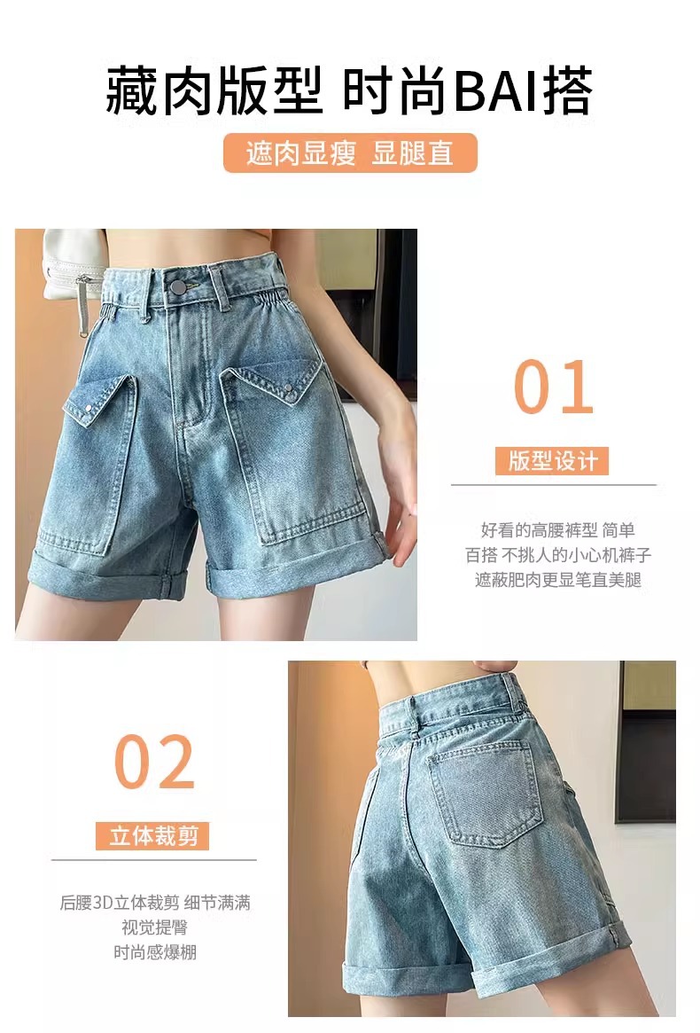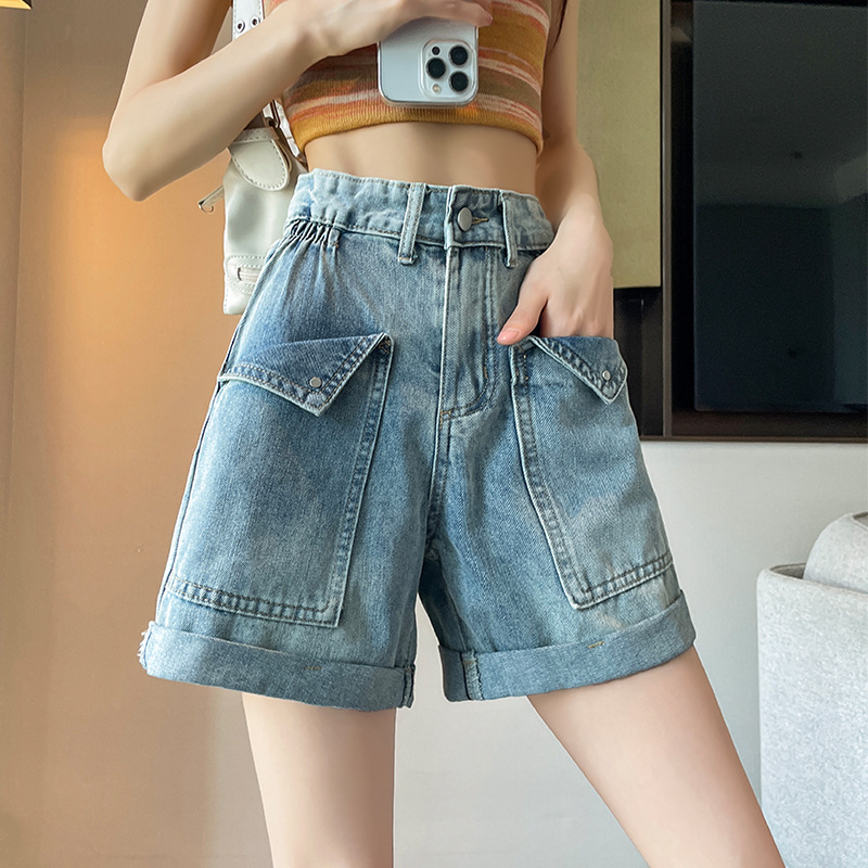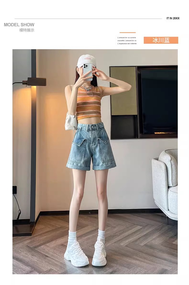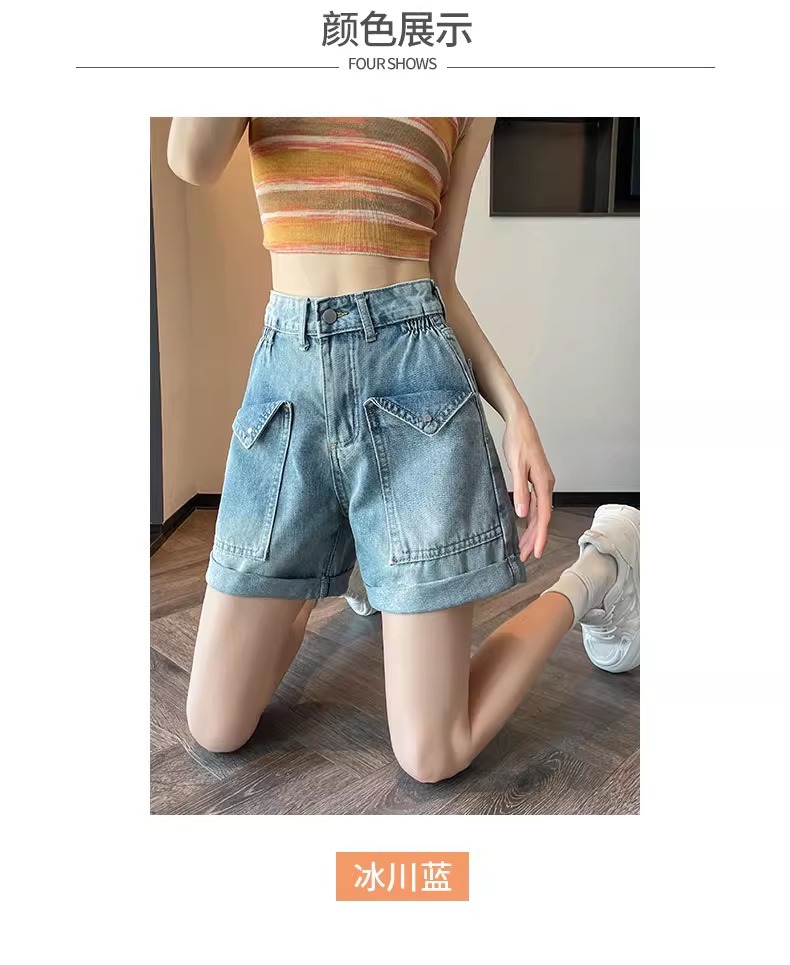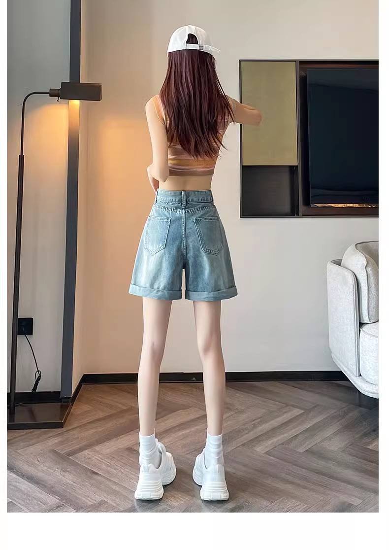 한국 스타일 컬 데님 반바지 여자 2025 년 여름 새 올매치 느슨한 와이드 레그 스트레이트 컬 A 자형 미드 길이 바지스토어 가기