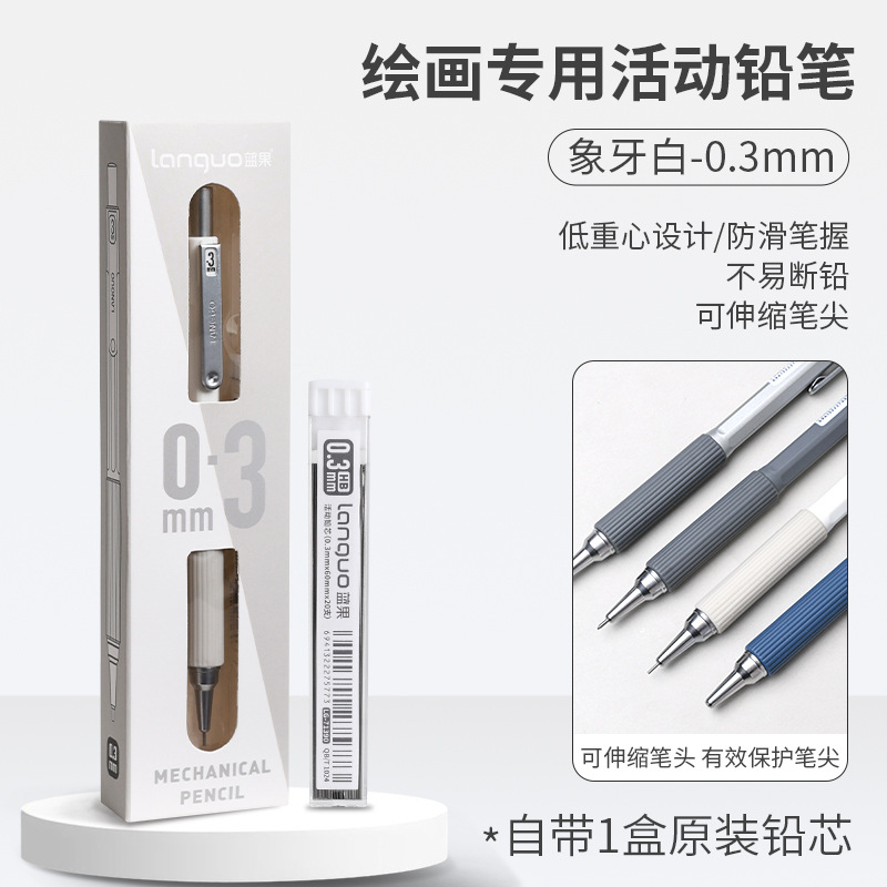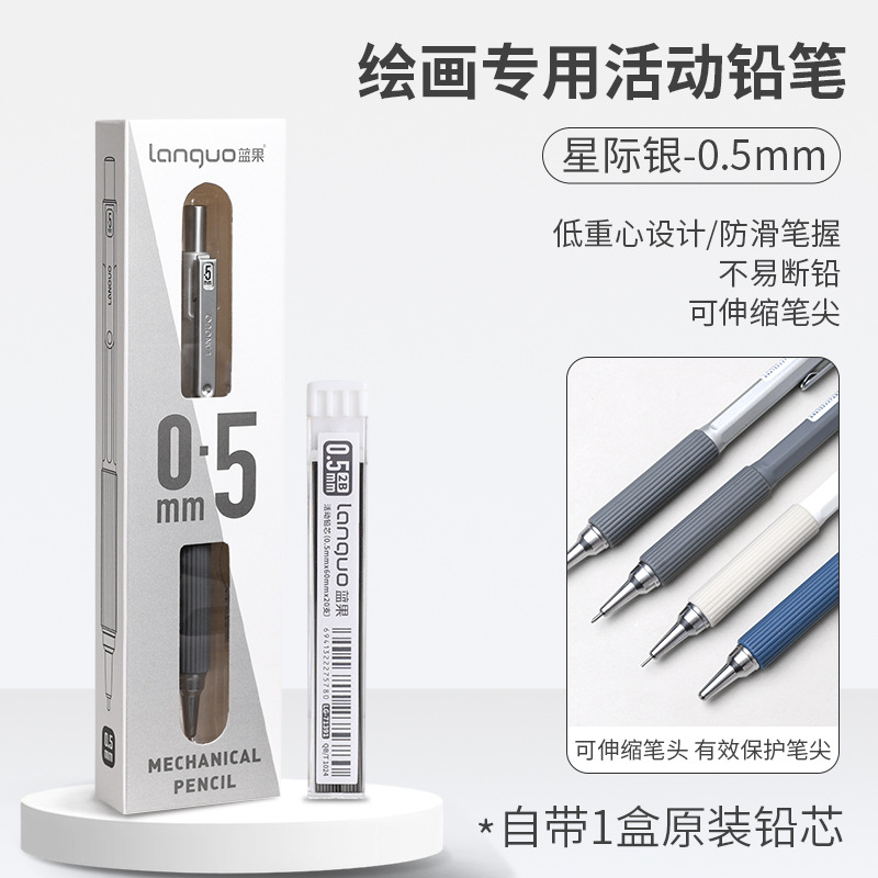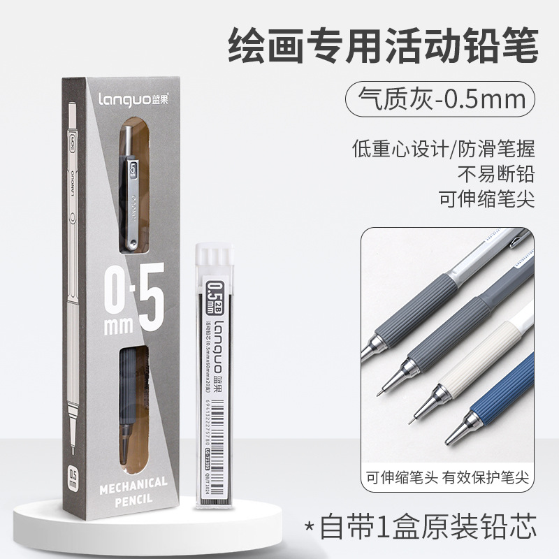 Languo 페인팅 금속 자동 연필 0.7 학생 쓰기 내장 고무 고가격 소프트 그립 샤프 펜슬 0.3스토어 가기