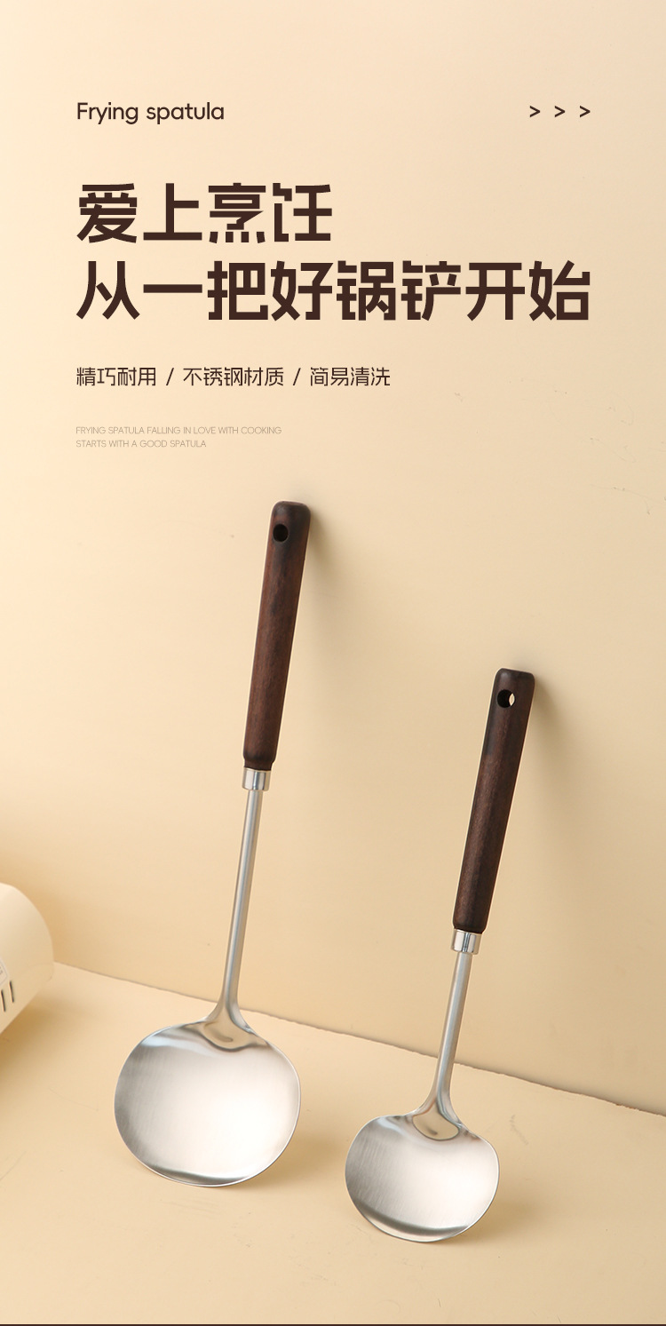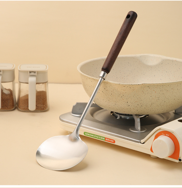 스테인레스 스틸 버섯 삽 단단한 나무 긴 손잡이 냄비 볶음 숟가락 가정용 세트 주방 요리 도구 애플 삽