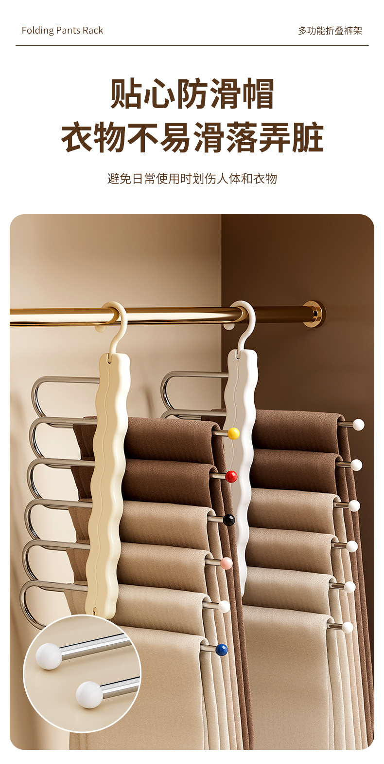 다기능 접이식 바지 걸이, 가정용 매직 트레이스리스 바지 클립, 옷장 보관 유물, 미끄럼 방지 바지 보관 걸이