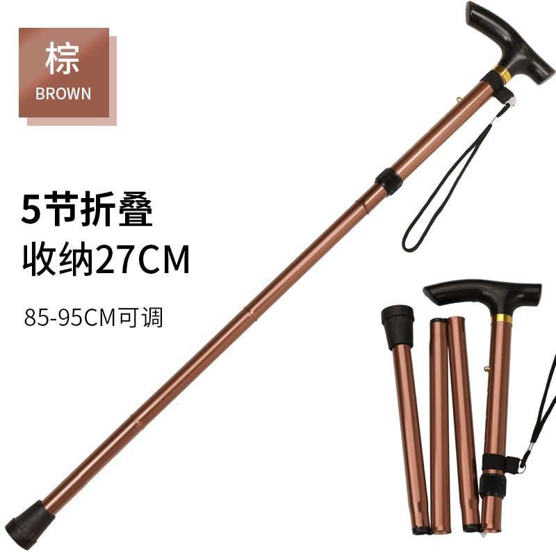 • 알루미늄 합금 접이식 지팡이 5단 브라운