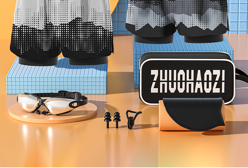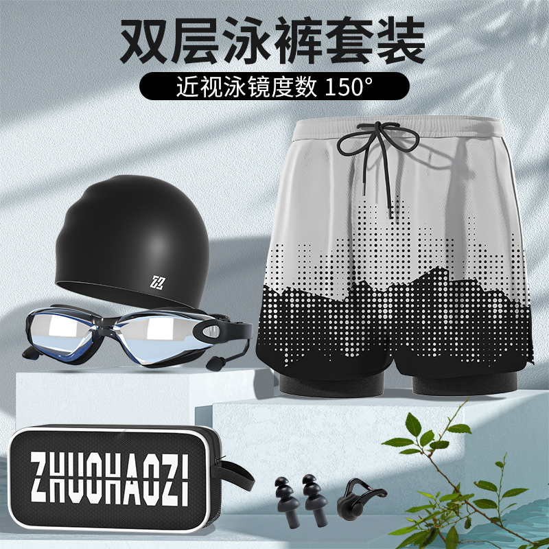 • 200°근시 슈트 그레이 [수영 트렁크 + 수영 모자 + 수영 고글 + 코 클립 귀마개 + 보관 가방]