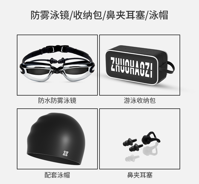 • 300°근시 슈트 그레이 [수영 트렁크 + 수영 모자 + 수영 고글 + 코 클립 귀마개 + 보관 가방]