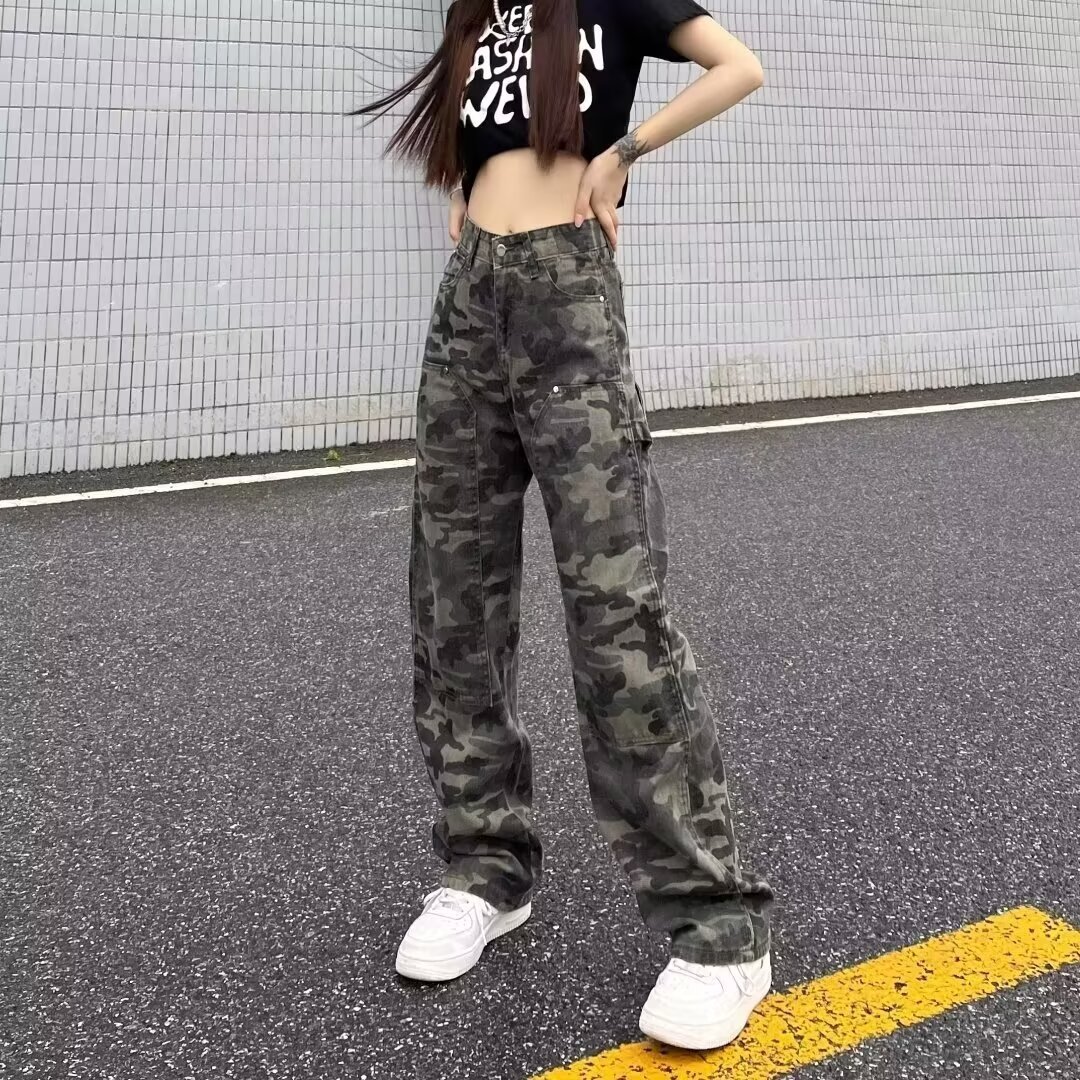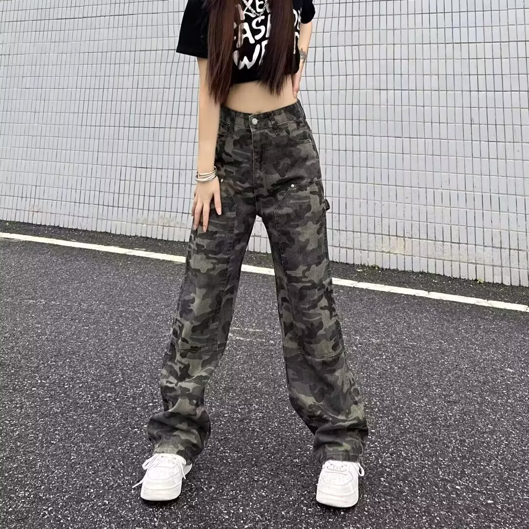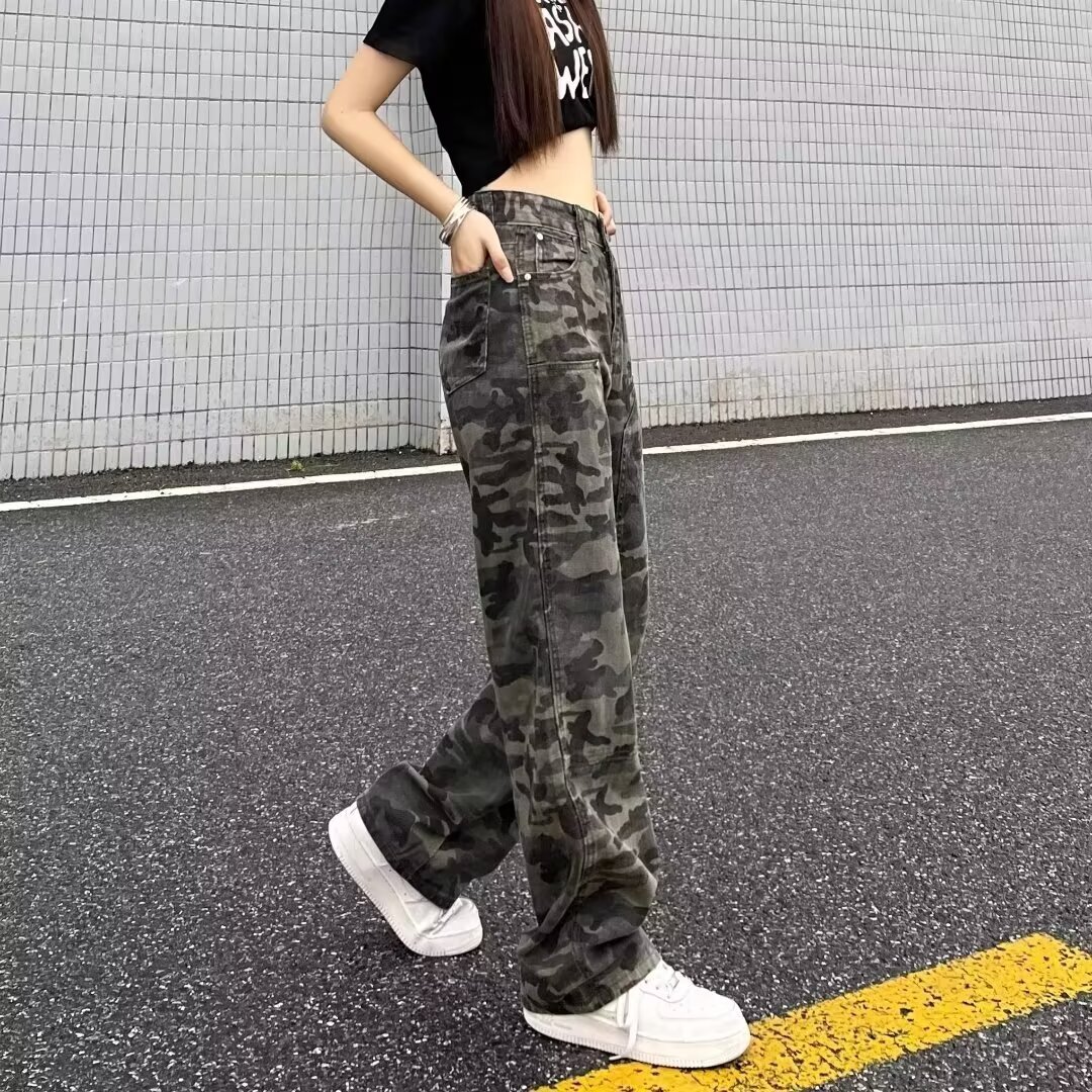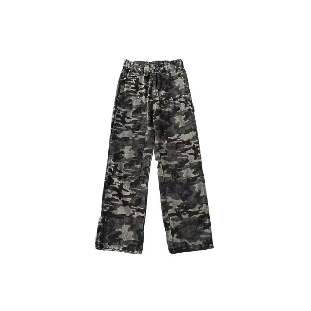 미국 스타일, 빈티지 위장 오버롤 트렌디 스트리트 느슨한 스트레이트 데님 바지 남녀