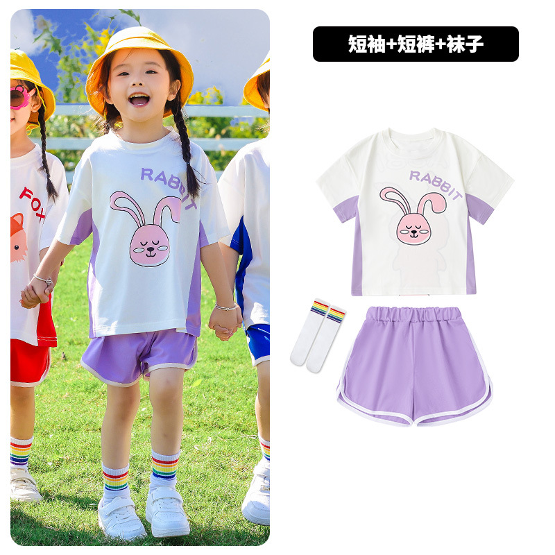 • 정장 [753D 여우반팔 + 611D 빨간색과 흰색 반바지] + 무지개 양말