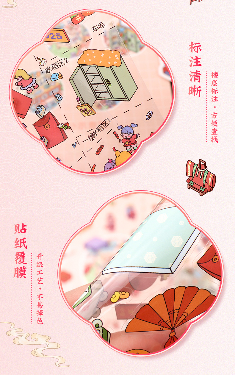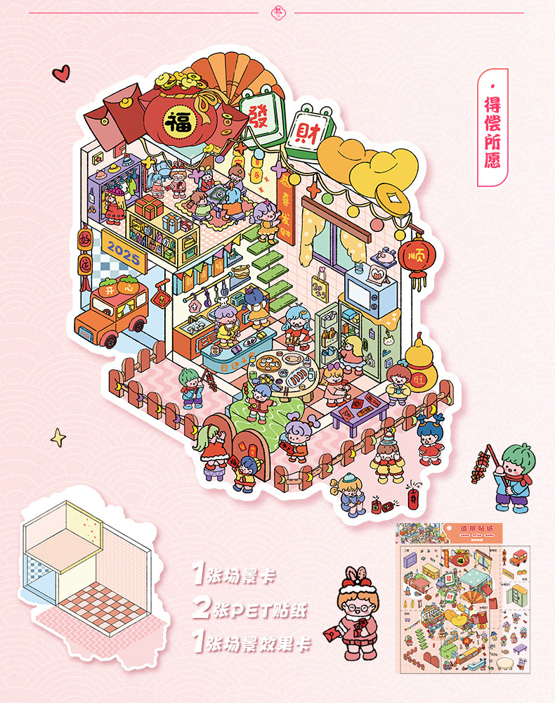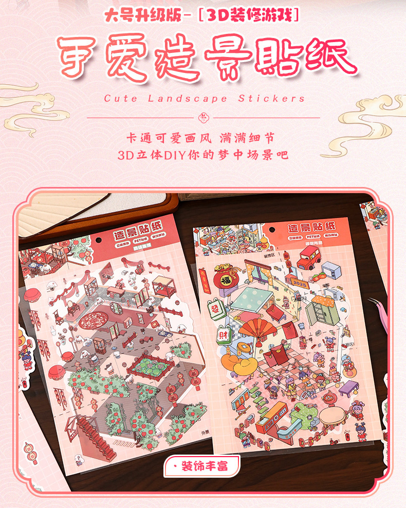 만화 장면 스티커, 오두막 운영 게임, 조경 스티커, 학생 수첩 장식, 3D 스티커, 감압 미니어처 스티커