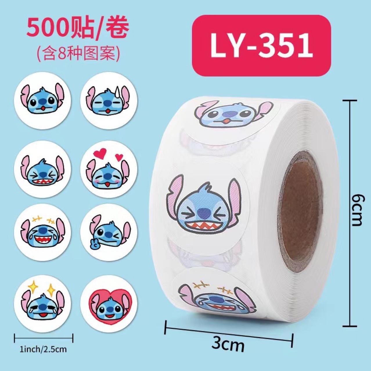500 스티커/롤 스타 스티치 라운드 씰링 스티커 자체 접착 라벨 스티치 어린이 보상 스티커스토어 가기