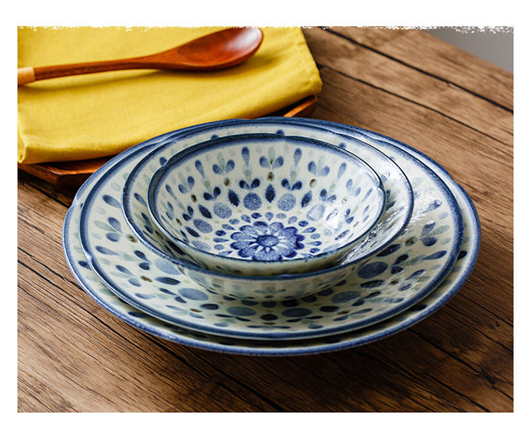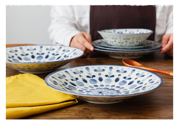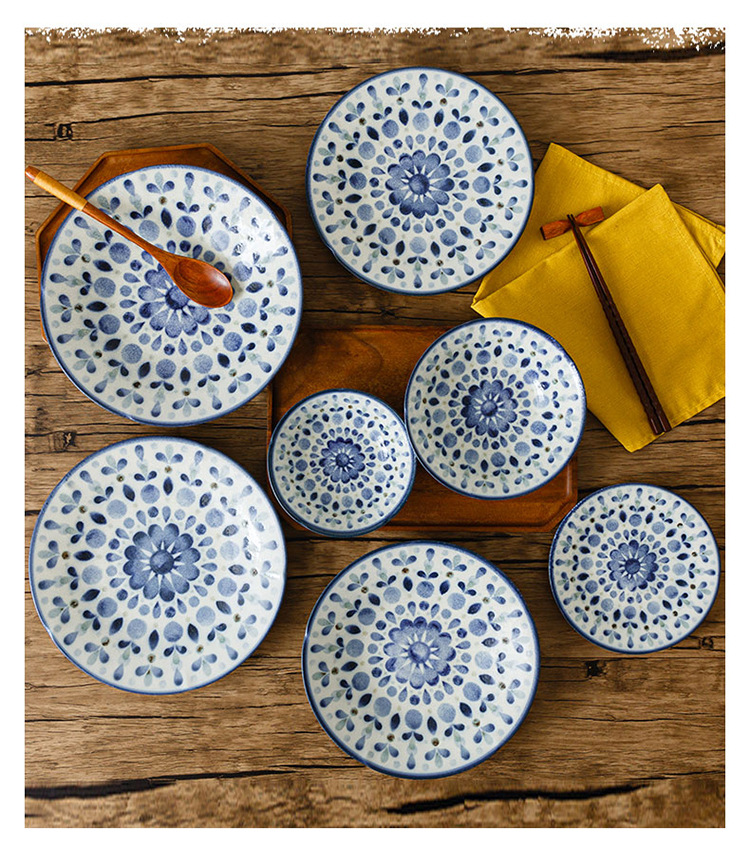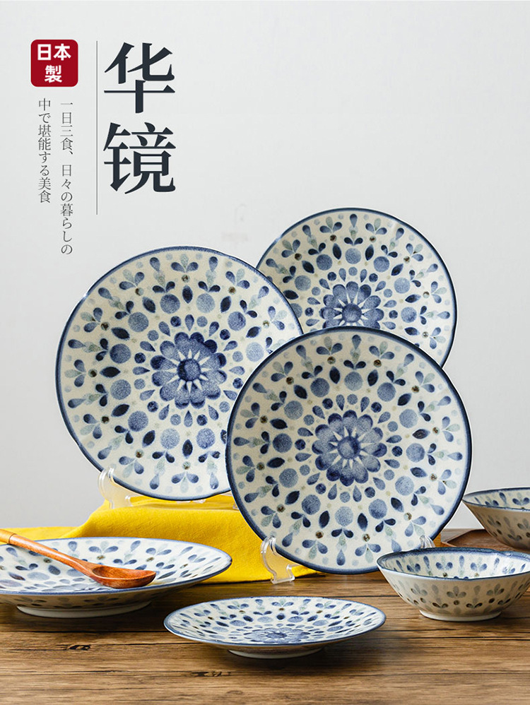 일본 수입 Chiyoyuanhua 거울 시리즈 식기 underglaze 컬러 워터 옥 질감 세라믹 플랫 플레이트 디너 플레이트 샐러드 그릇스토어 가기