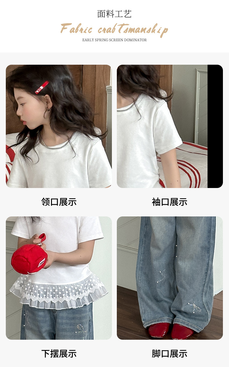여자 반팔 세트 스위트 스파이스 레이스 반팔 티셔츠 다이아몬드 보우 청바지 투피스 2025