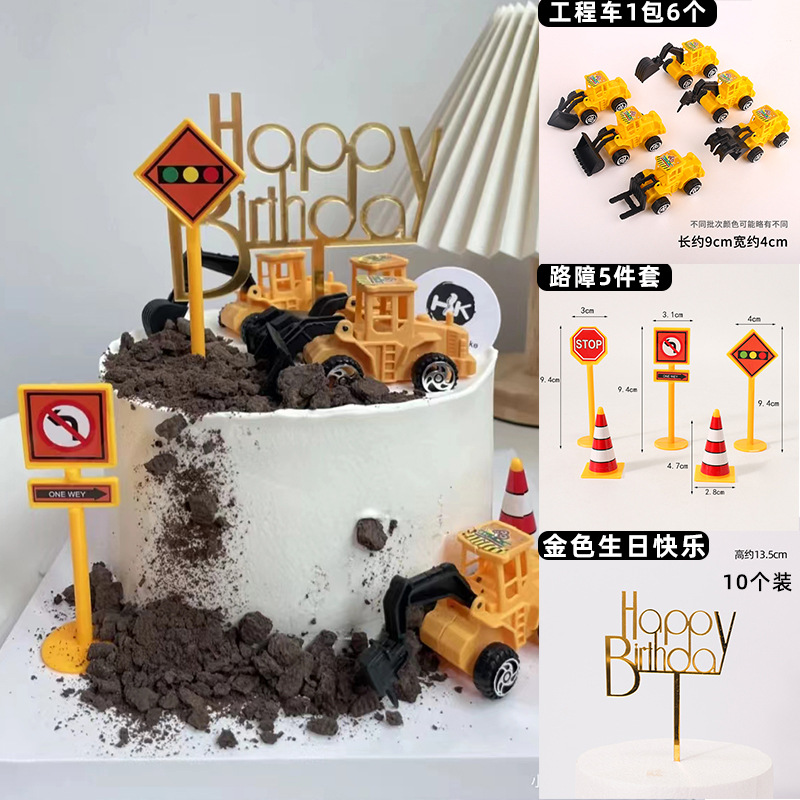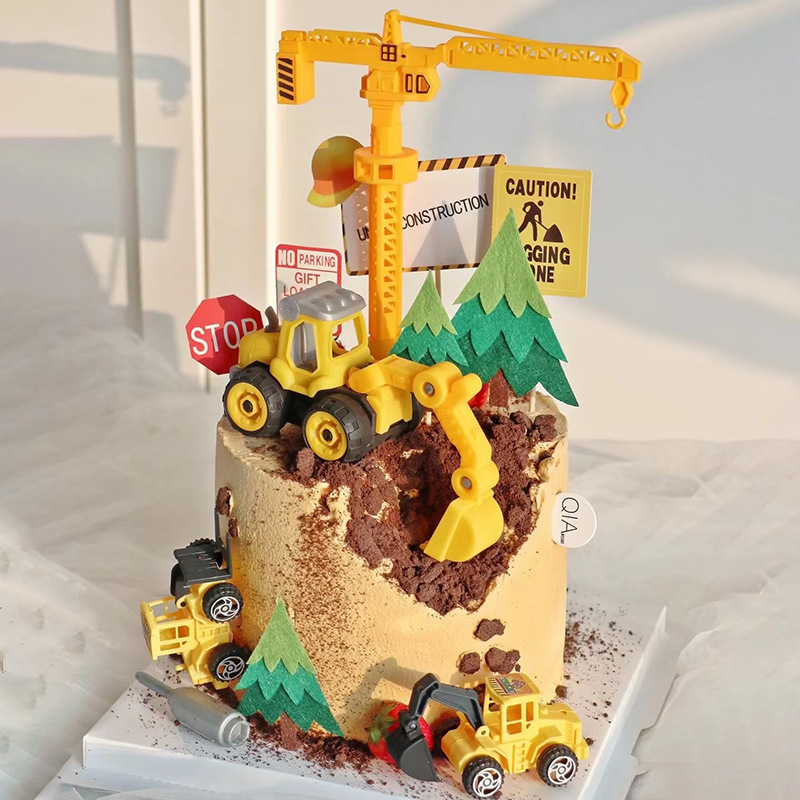 엔지니어링 차량 생일 케이크 장식 장식품 굴삭기 굴삭기 어린이 소년 바리케이드 크레인 베이킹 플러그인스토어 가기