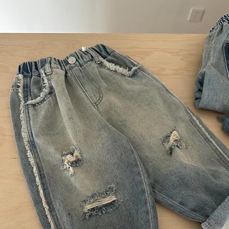 봄과 가을 남성과 여성의 아동복 청바지 아기의 서양식 어린이 성격 유행 한국 스타일 패션 라브 리핑 거지 바지스토어 가기