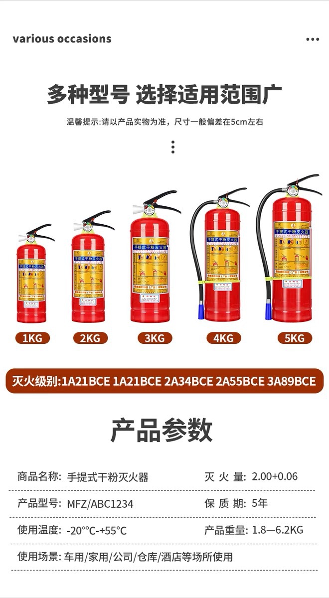 휴대용 4kg 소화기 건조 분말 4kg 매장 가정용 상업용 공장 1kg 2kg 3kg 5kg 소방 장비스토어 가기