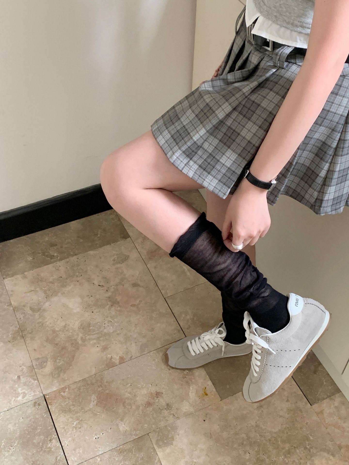 여성용 봄 여름 얇은 살짝 비치는 흰색 종아리 양말, 달콤한 일본식 JK 회색 파일 양말, 귀가 있는 종아리 양말스토어 가기