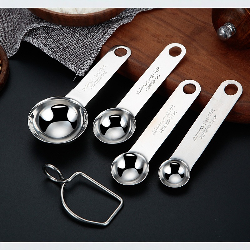 다기능 베이킹 계량스푼 공장 직판, 해외 전용 304 스테인리스 계량컵 및 계량스푼 세트(눈금 포함)스토어 가기