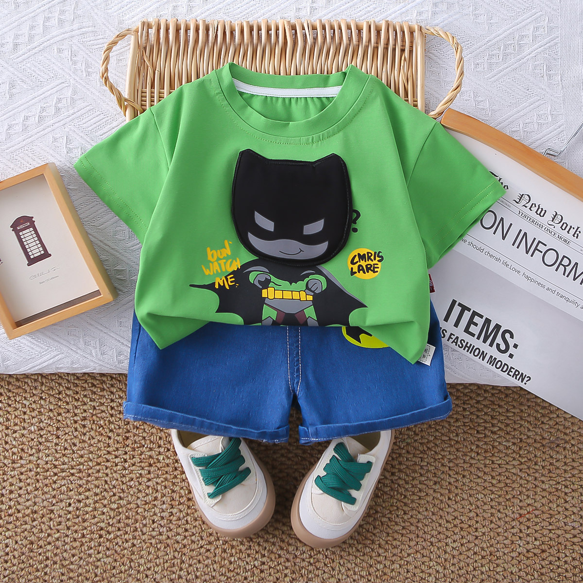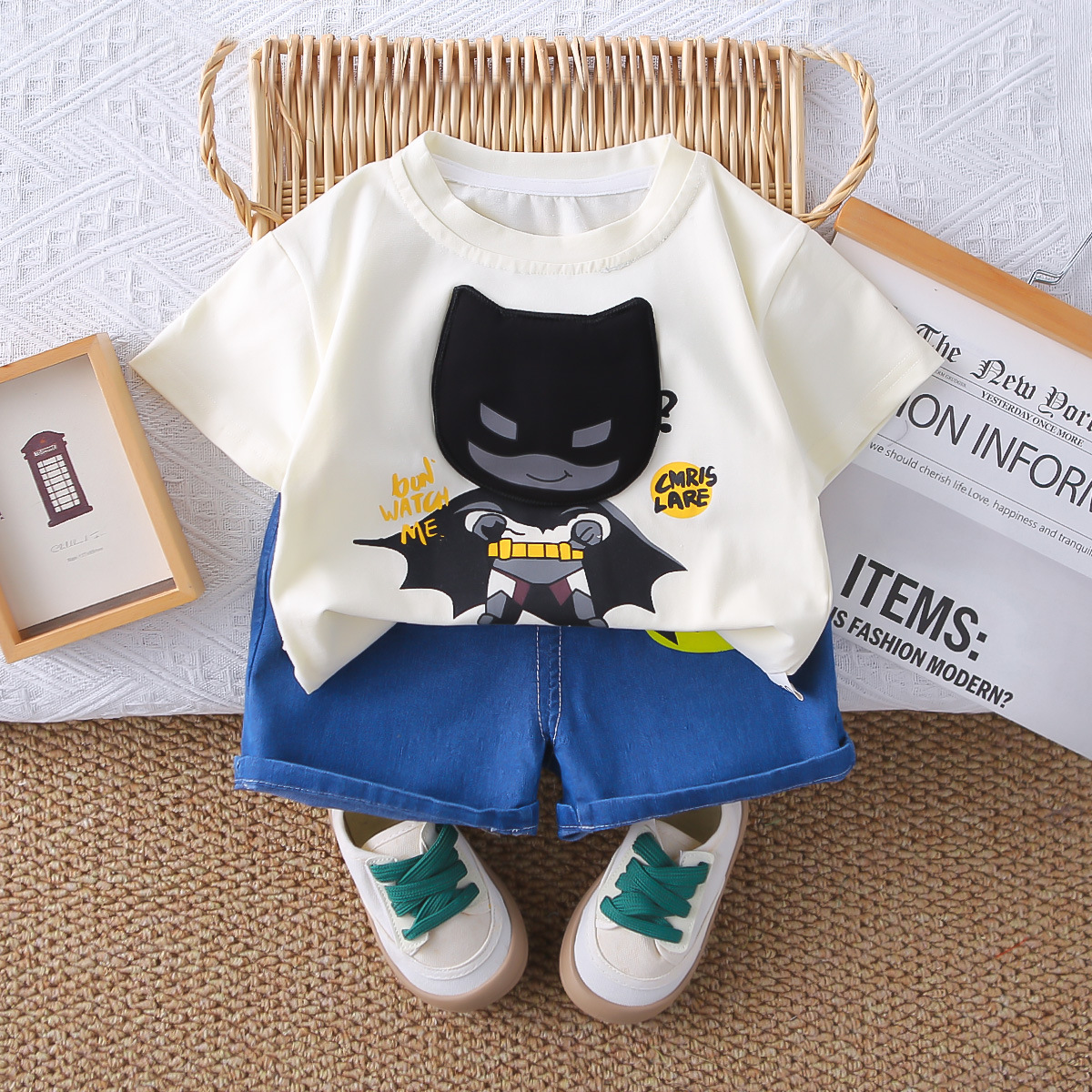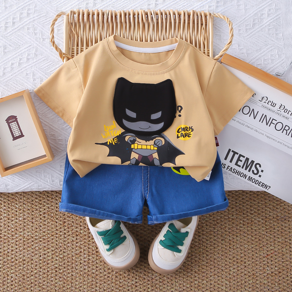 새로운 여름 어린이 반팔 티셔츠 투피스 세트 0-5 세 대외 무역 아동복 도매 아기 작은 소년 여름 패션스토어 가기