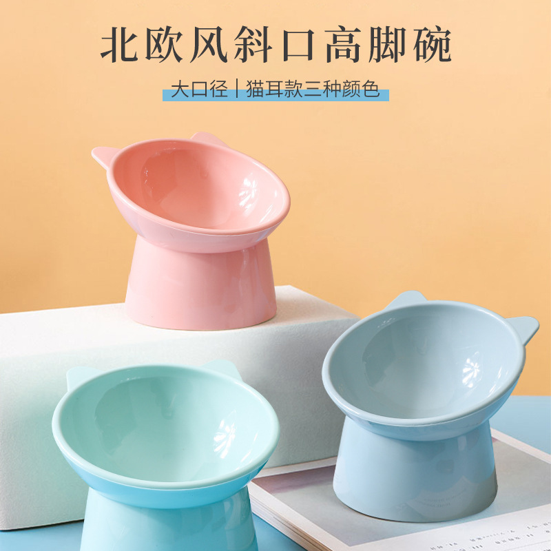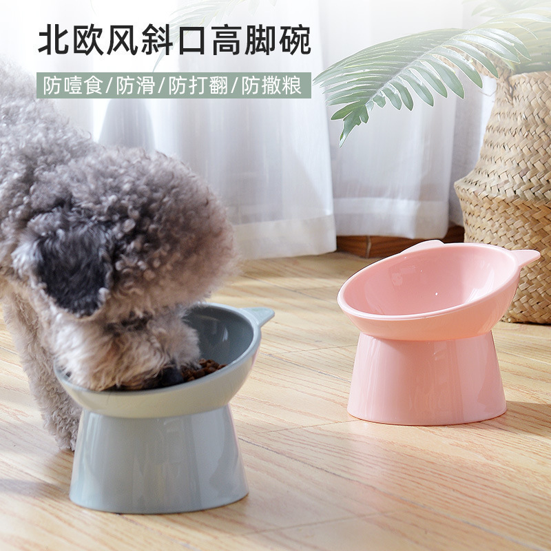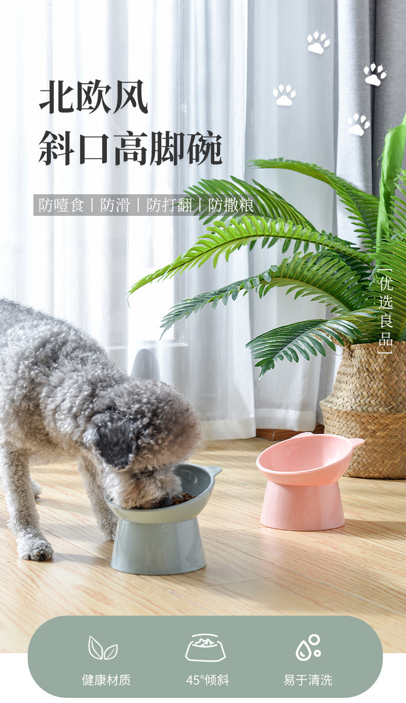 국경을 넘는 애완동물 급식 그릇, 경사형 목 보호 그릇, 대구경 강아지 그릇 용품, 고양이와 강아지 모두 사용 가능한 디자인, 수출용 고양이 그릇스토어 가기