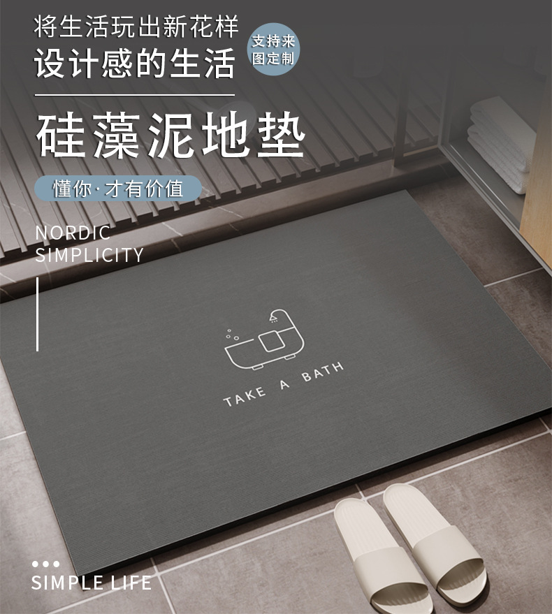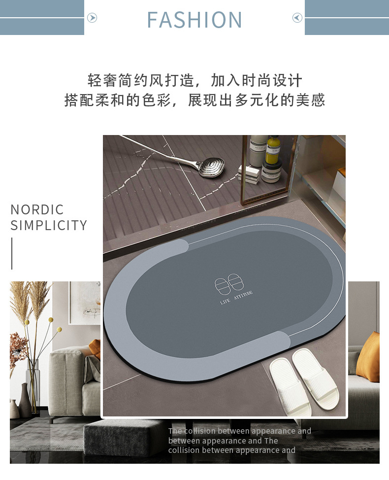 국경을 넘는 아마존 욕실 바닥 매트, 흡수성, 속건성 규조토 바닥 매트, 심플한 스타일의 욕실 입구 미끄럼 방지 매트스토어 가기