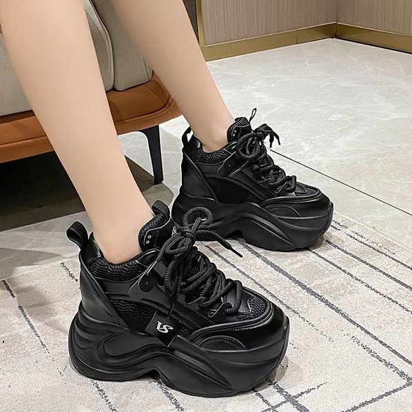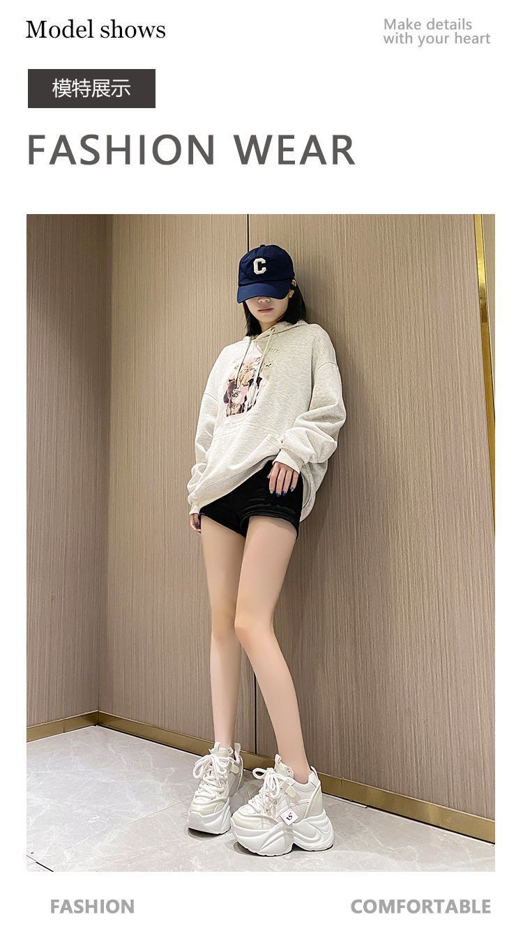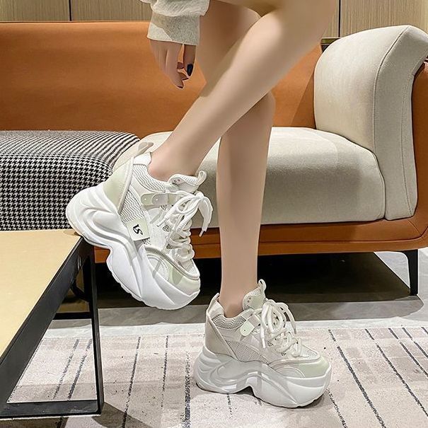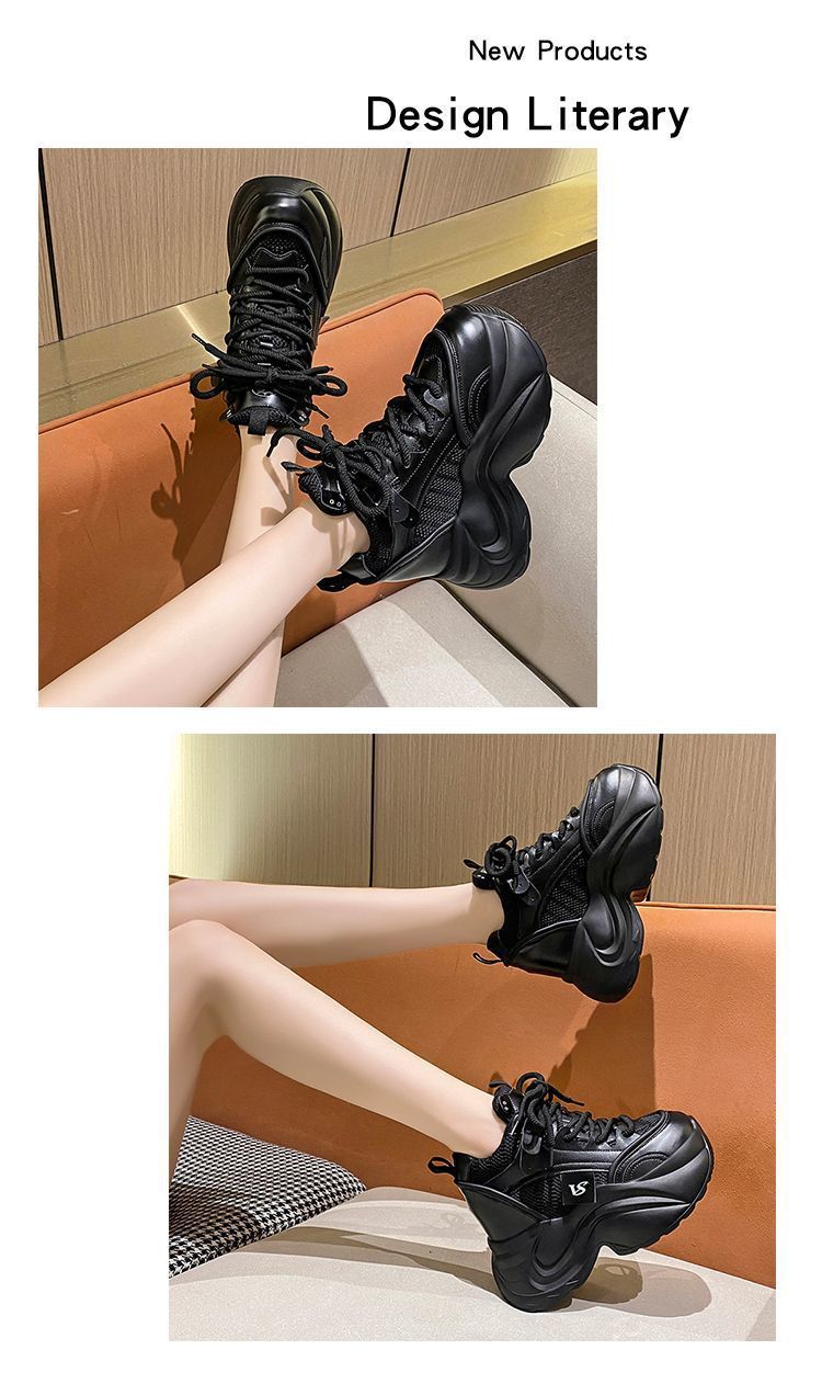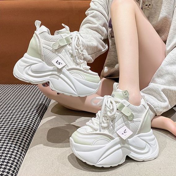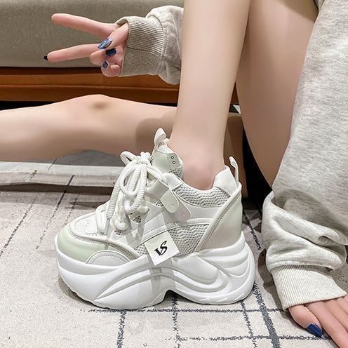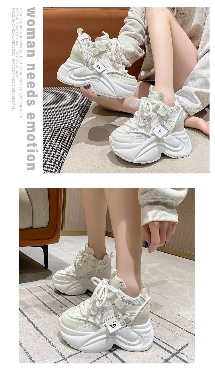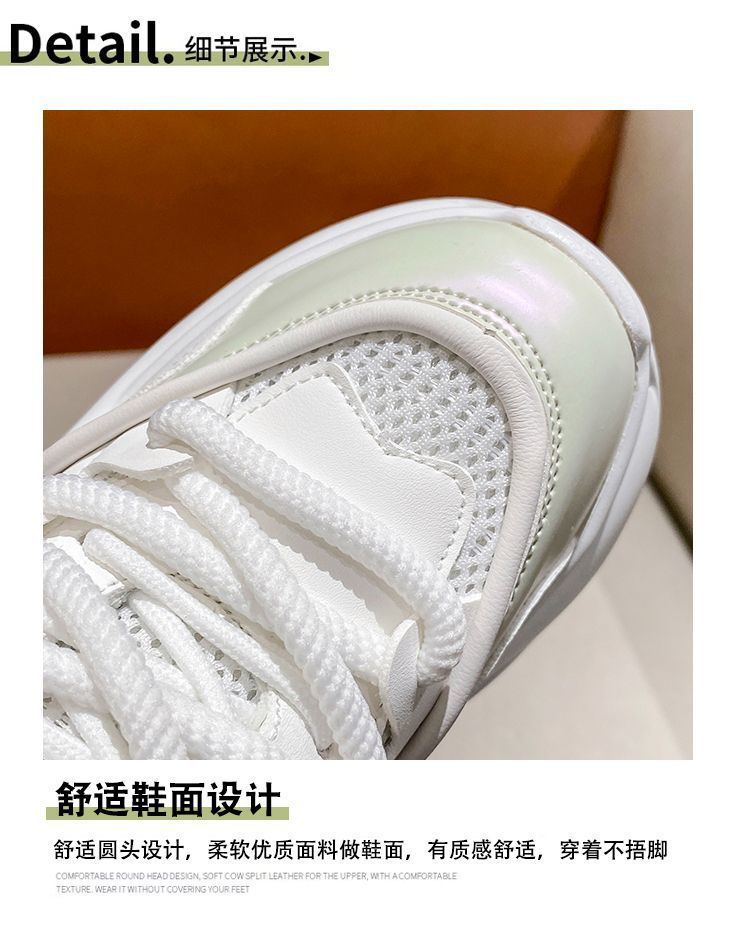 유럽 스테이션 10 여성용 키가 큰 흰색 신발, 봄 가을 신상 메쉬 다용도 레이스업 캐주얼 슈즈스토어 가기