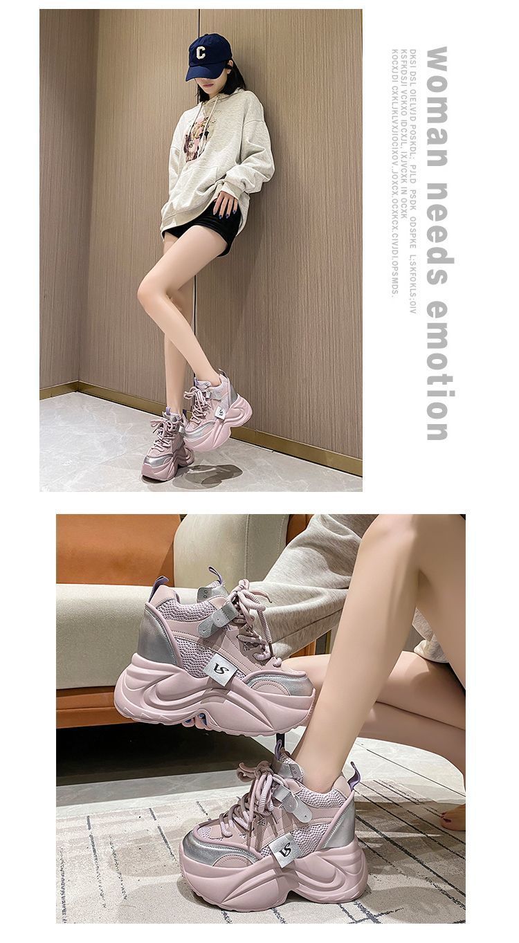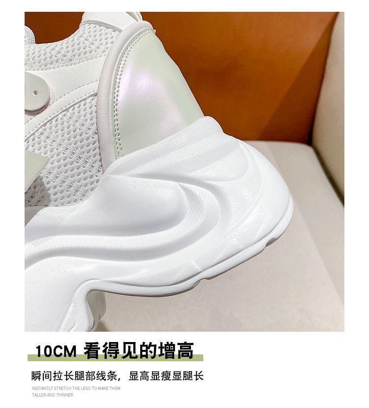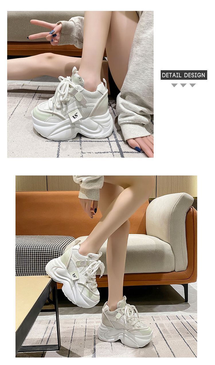 유럽 스테이션 10 여성용 키가 큰 흰색 신발, 봄 가을 신상 메쉬 다용도 레이스업 캐주얼 슈즈