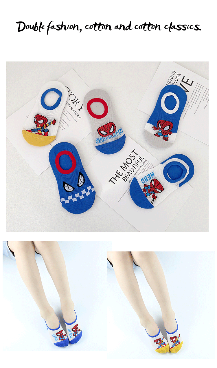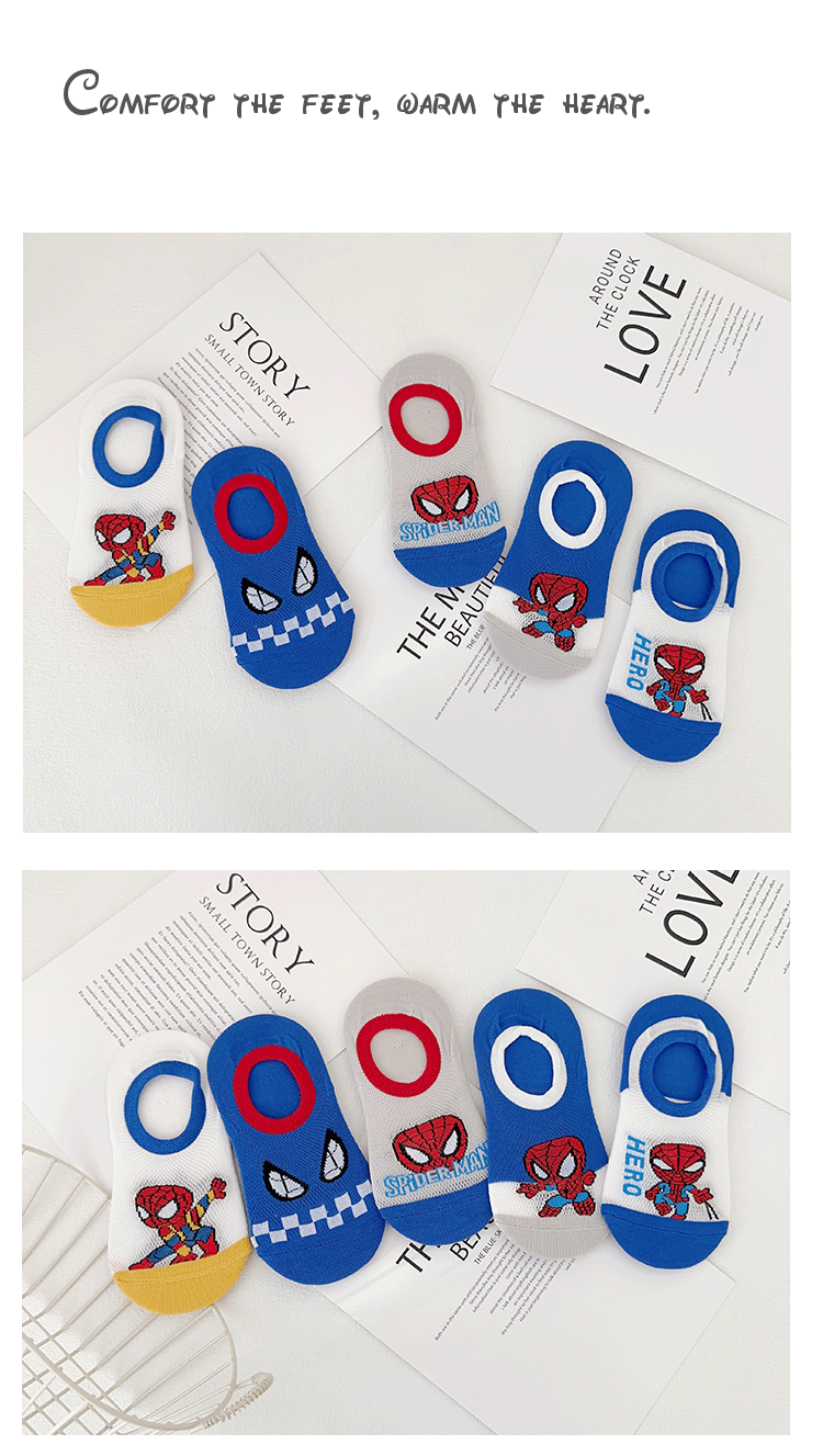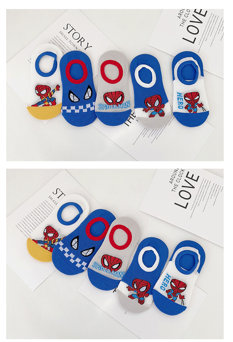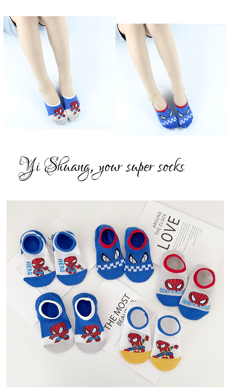 Yi Shuang 어린이 양말 여름 메쉬 만화 스파이더 맨 보트 양말 Combed 코튼 보이즈 뼈없는 입 보이지 않는 양말