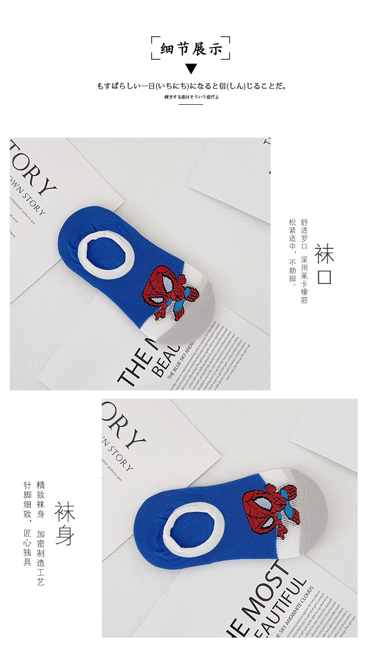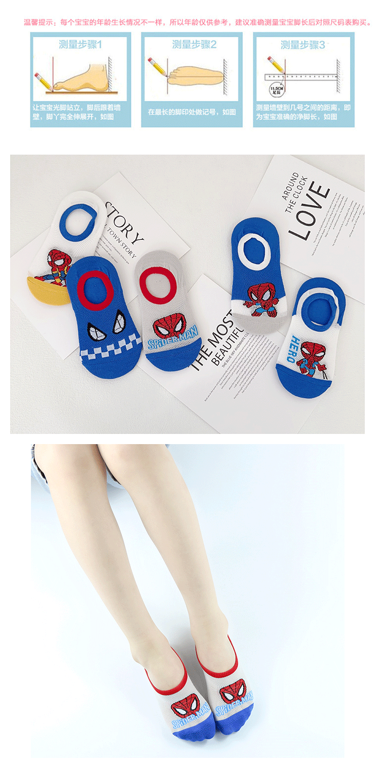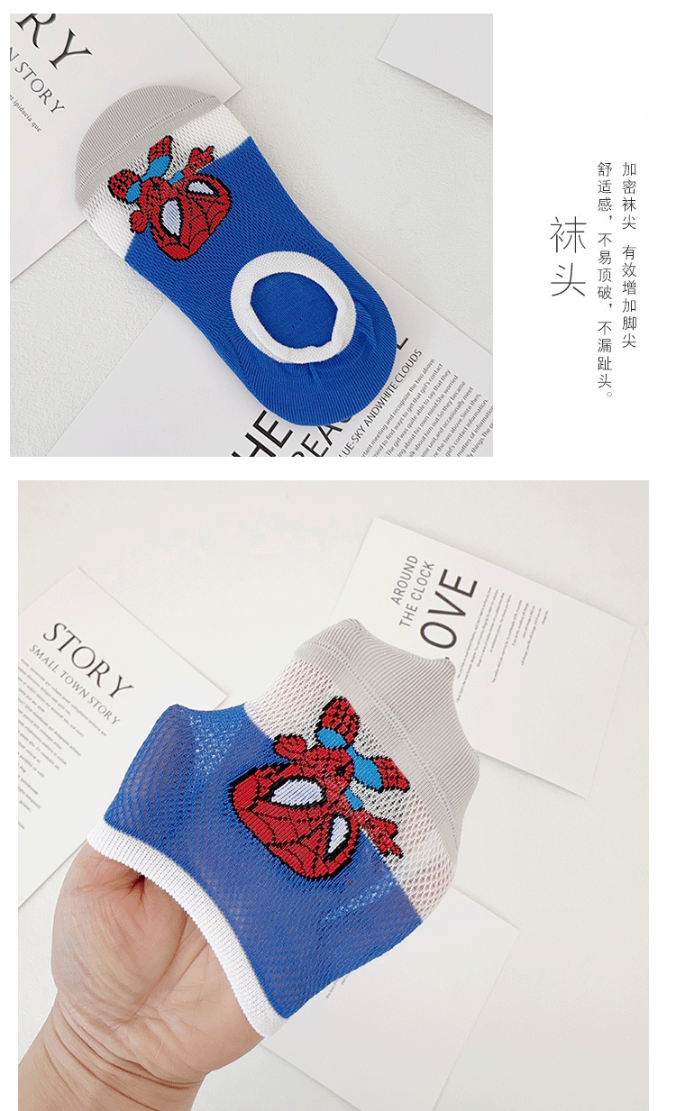 Yi Shuang 어린이 양말 여름 메쉬 만화 스파이더 맨 보트 양말 Combed 코튼 보이즈 뼈없는 입 보이지 않는 양말스토어 가기