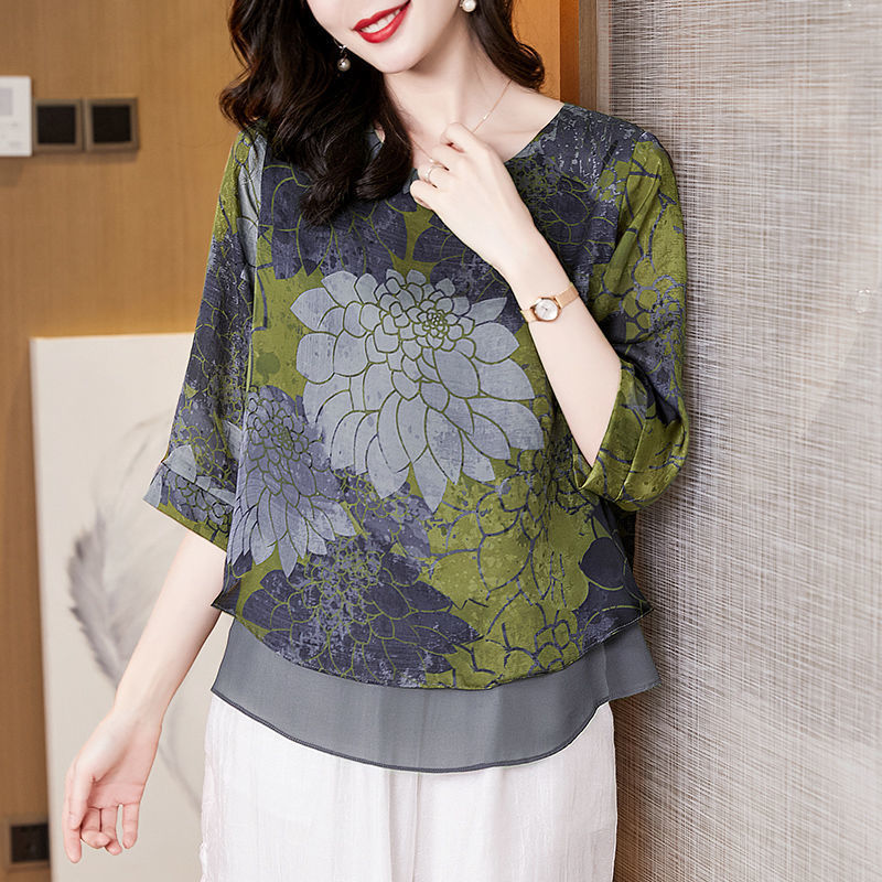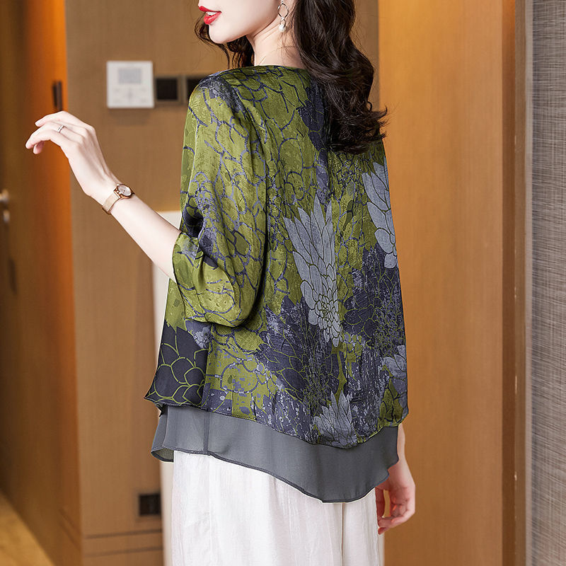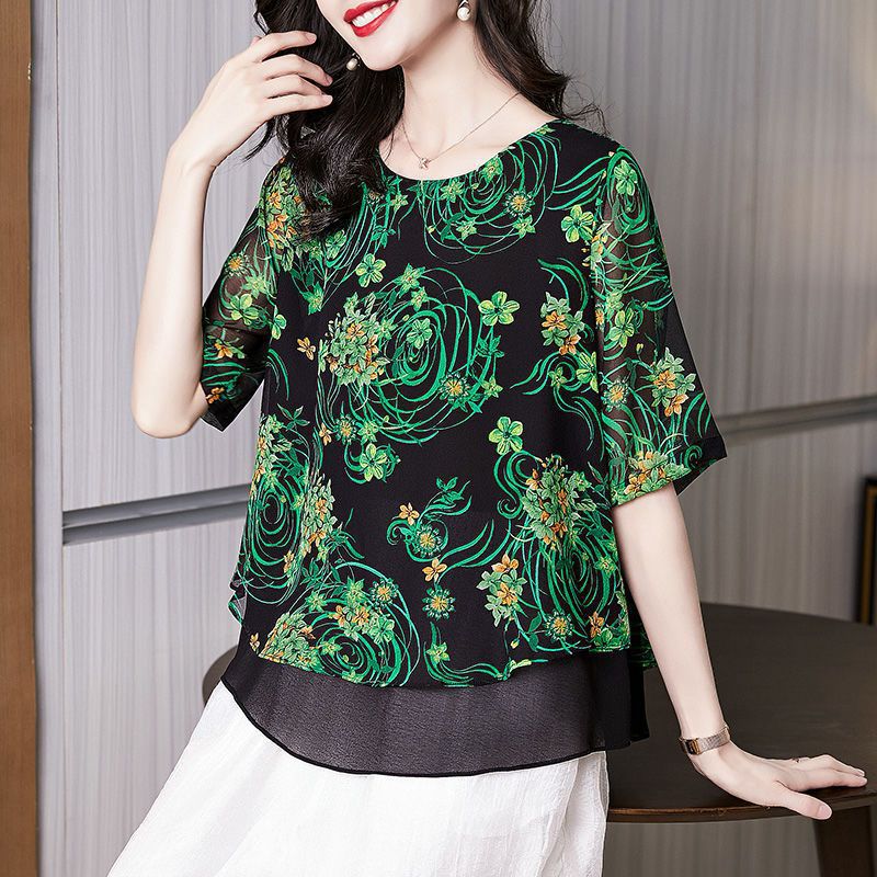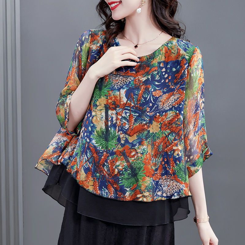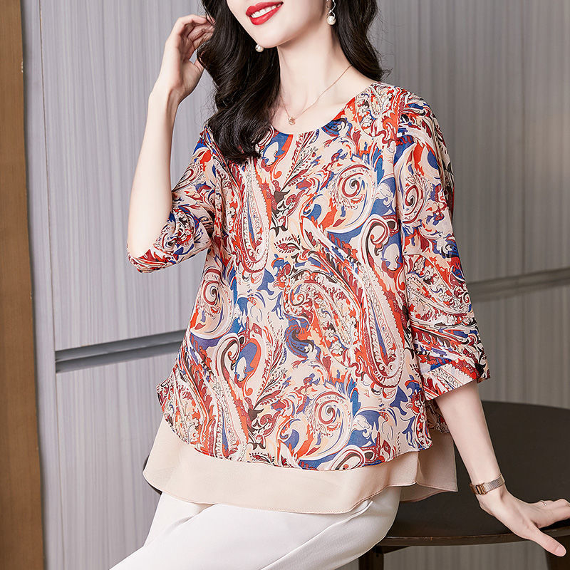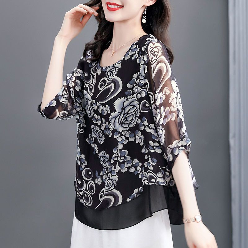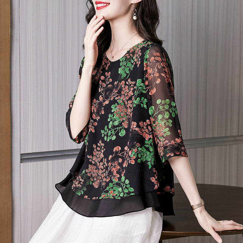 고급스러운 아름다운 패셔너블한 쉬폰 셔츠 여성 2024 신상 여름 프린트 셔츠 탑