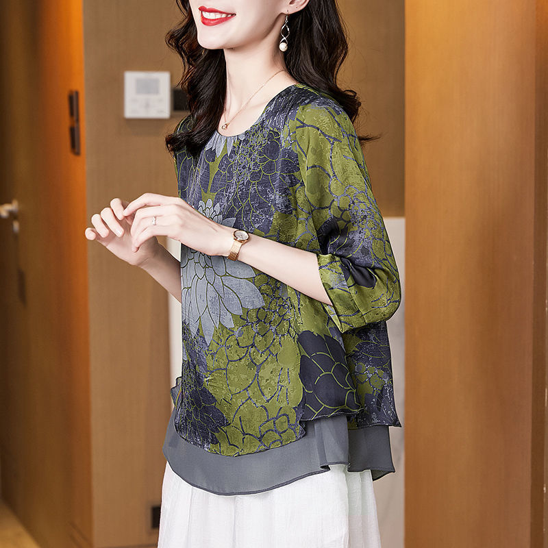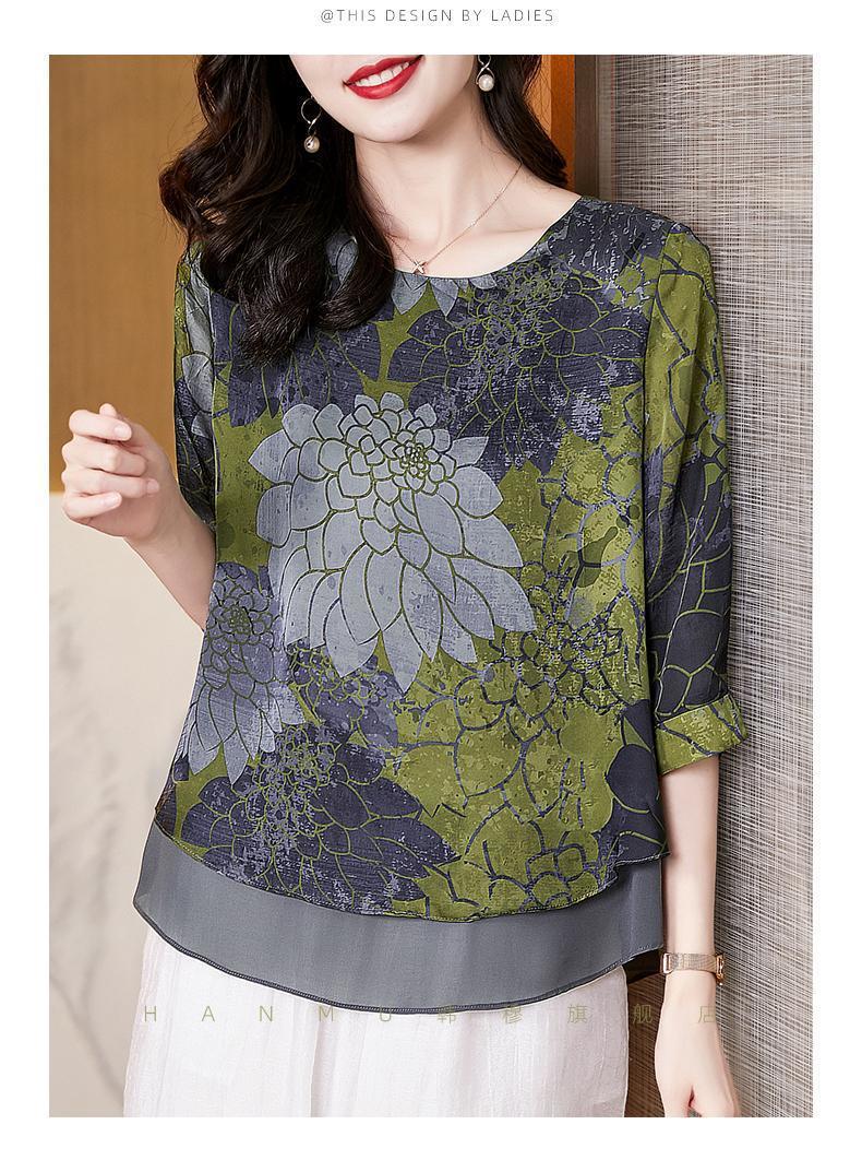 고급스러운 아름다운 패셔너블한 쉬폰 셔츠 여성 2024 신상 여름 프린트 셔츠 탑스토어 가기