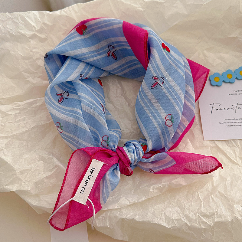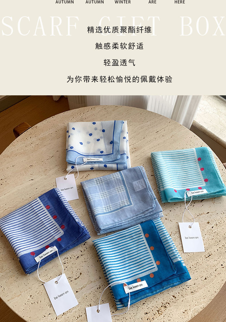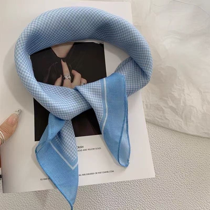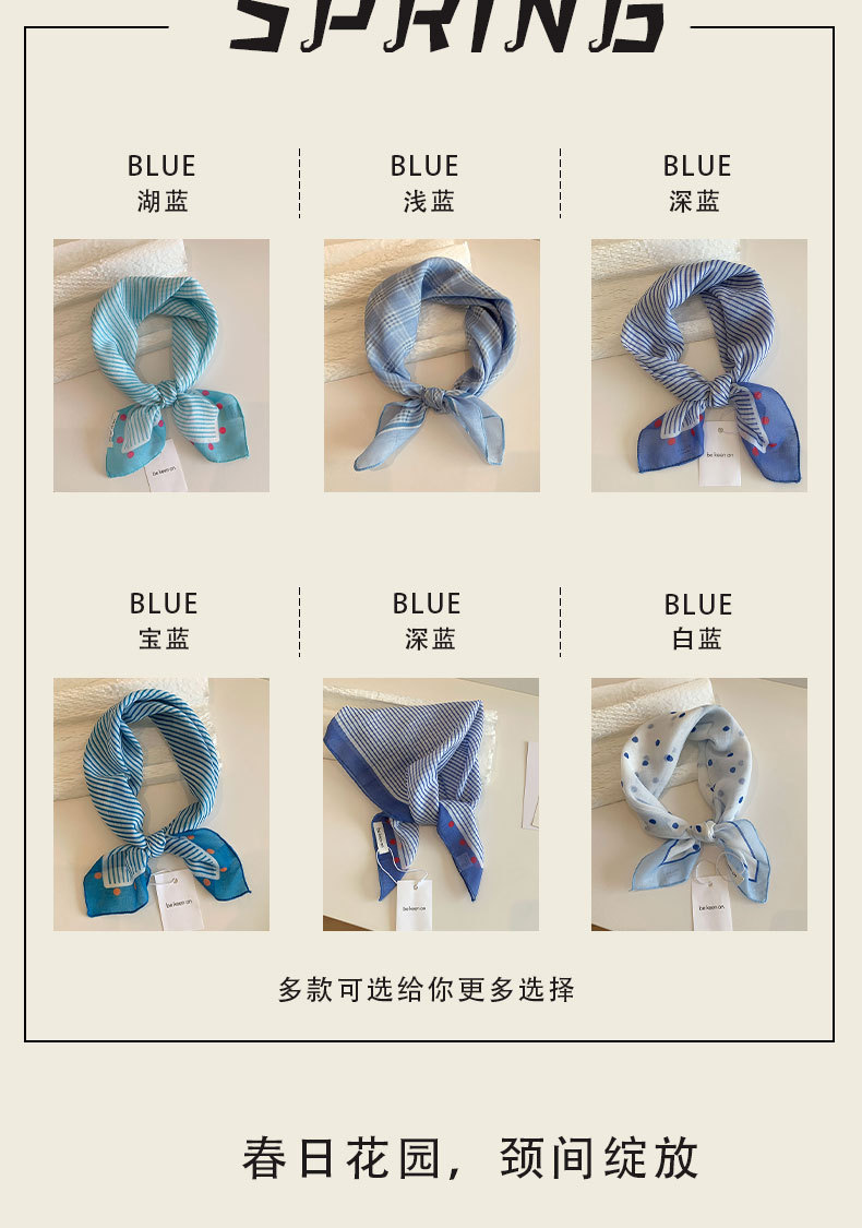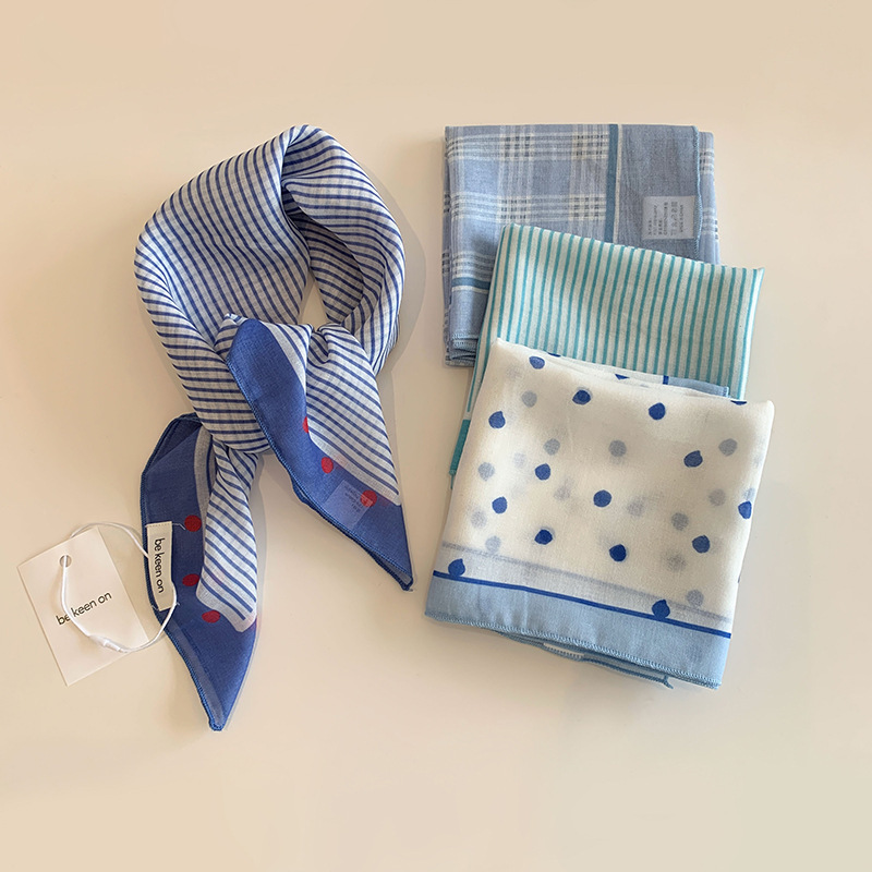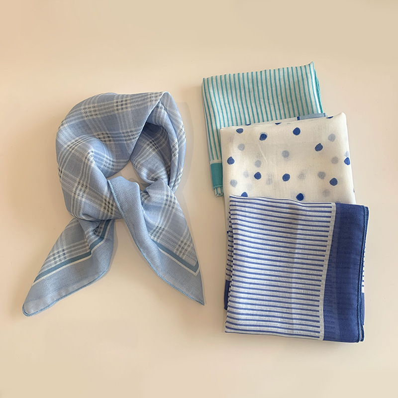블루 터번 여성의 봄과 여름 새로운 하이 엔드 센스 헤어 밴드 통기성 예술적 작은 광장 올 매치 터번 트렌디 트라이앵글 스카프