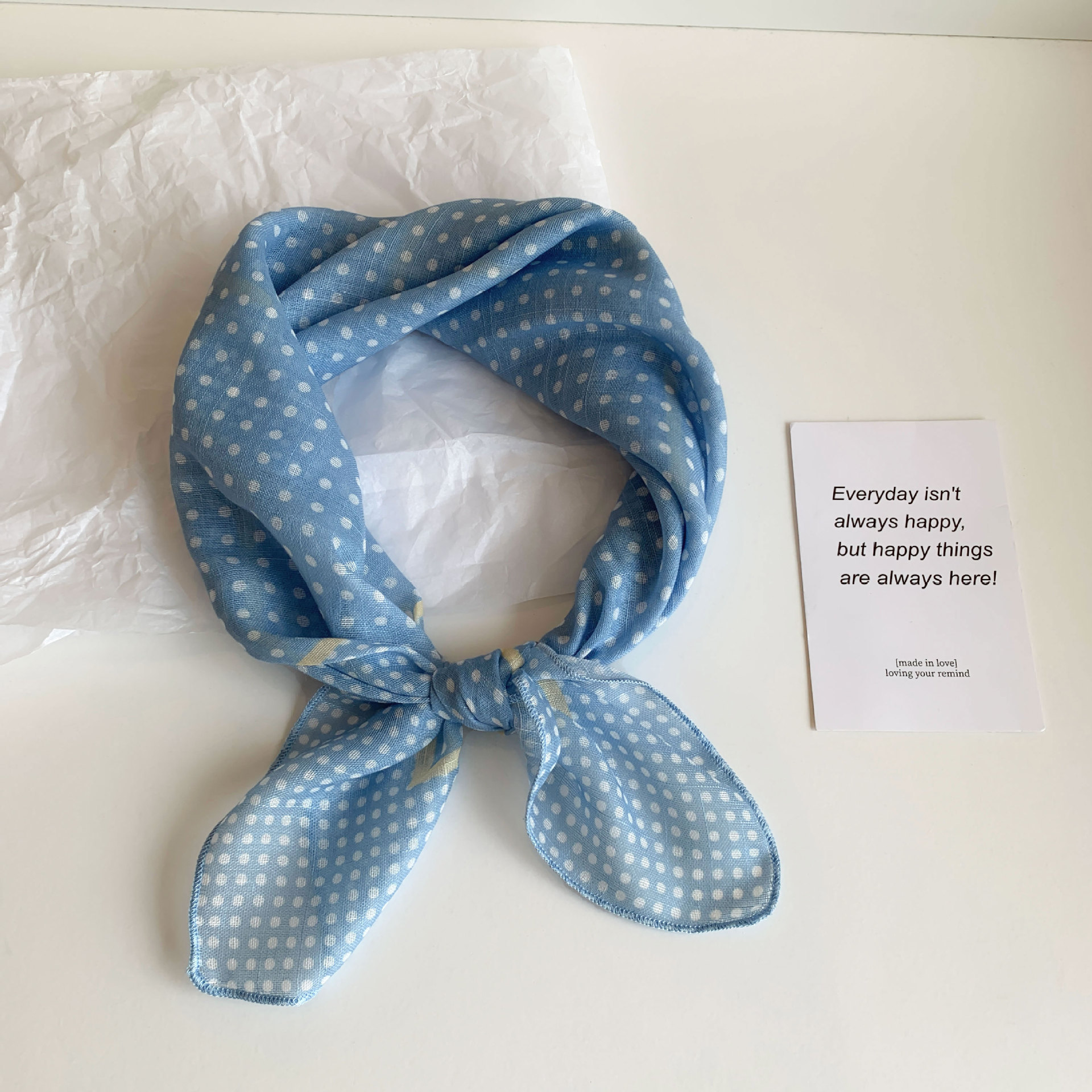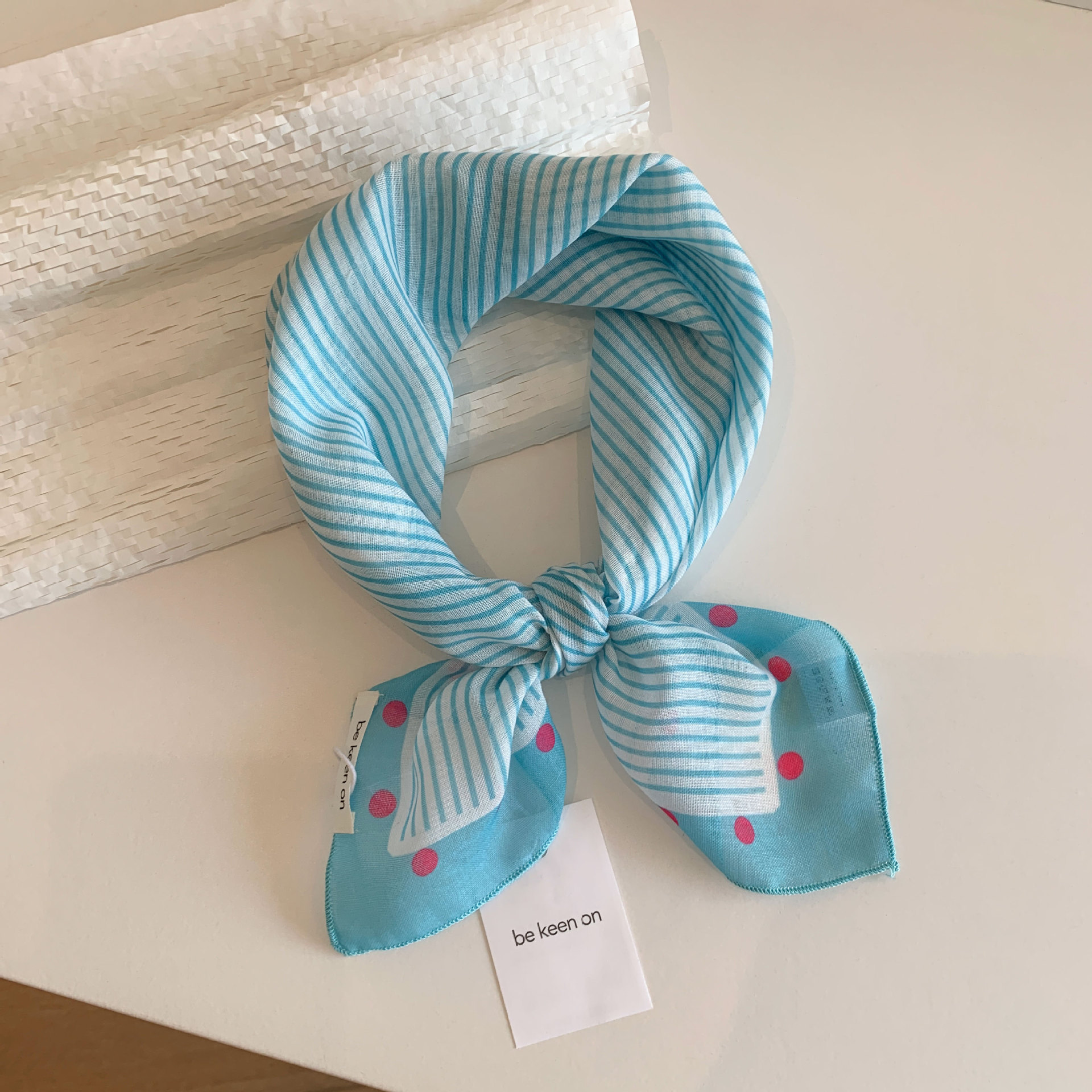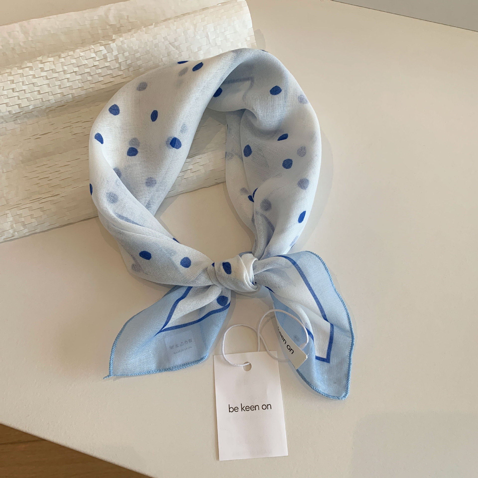 블루 터번 여성의 봄과 여름 새로운 하이 엔드 센스 헤어 밴드 통기성 예술적 작은 광장 올 매치 터번 트렌디 트라이앵글 스카프스토어 가기
