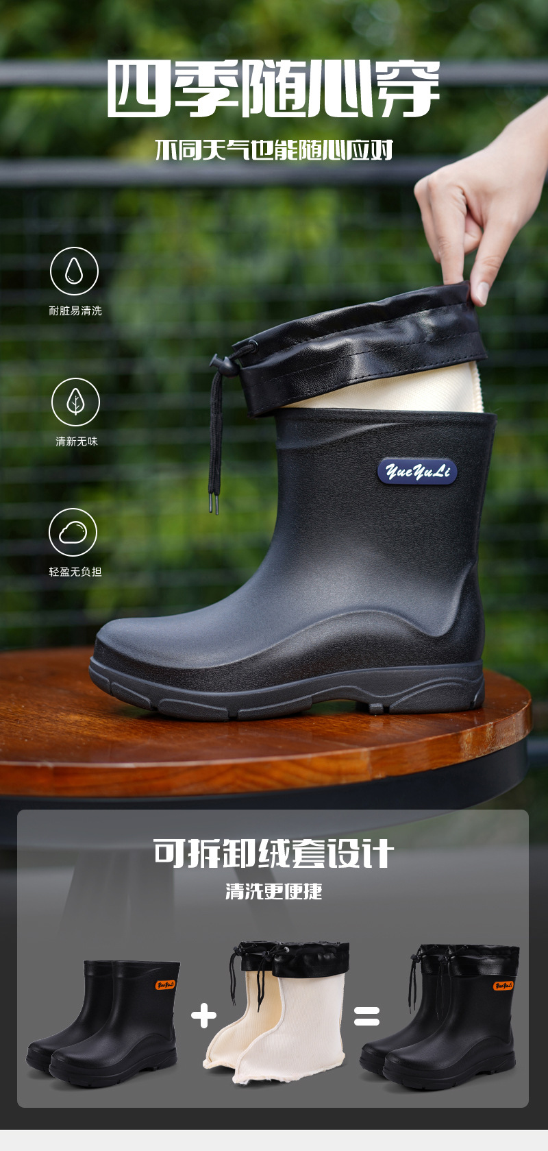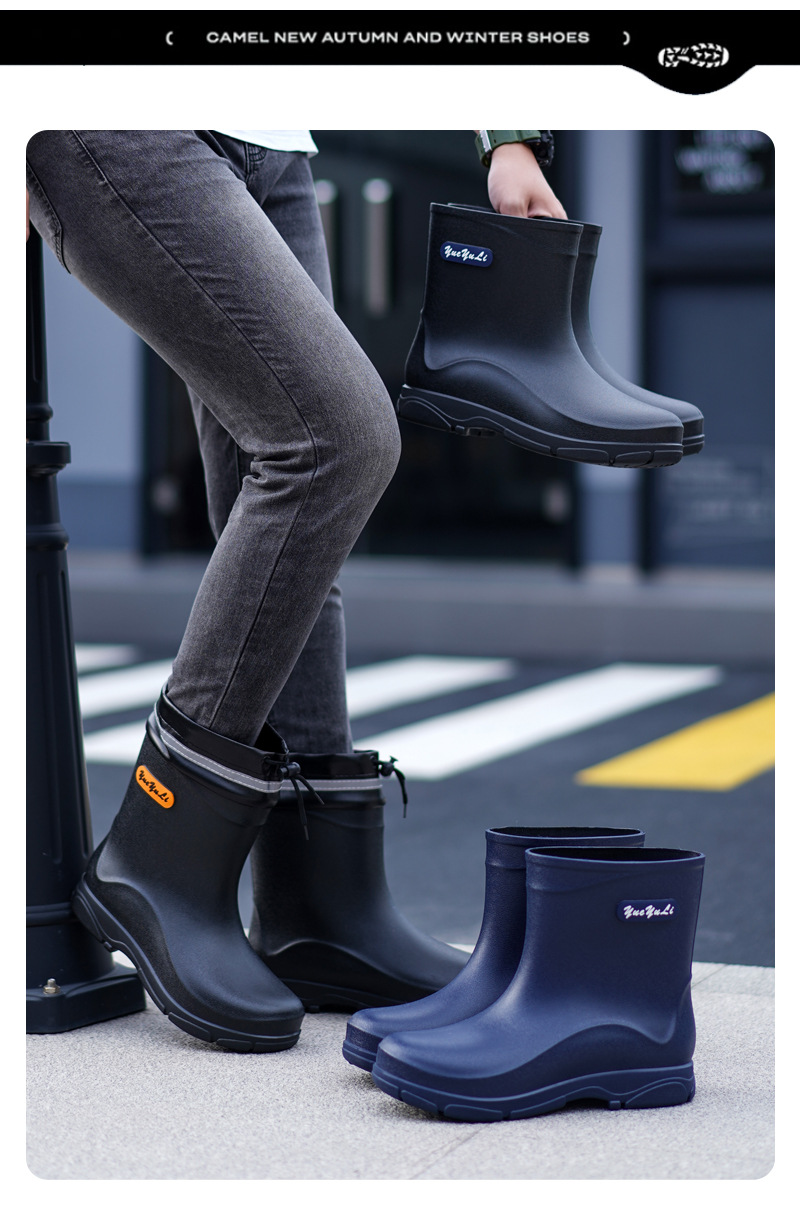 2025 년 국경을 넘는 새로운 일본과 한국 패션 트렌드 기모 장화 남성 야외 방수 낚시 신발 미끄럼 방지 워터 부츠스토어 가기