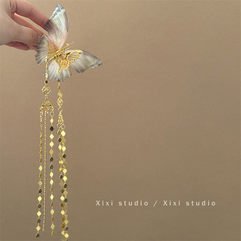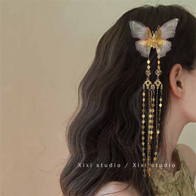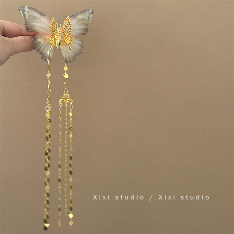 슈퍼 불멸의 Guofeng 나비 술 헤어 핀 새로운 중국 스타일 머리 꼰 덕빌 클립 Guofeng Hanfu 헤드웨어 깨진 머리핀