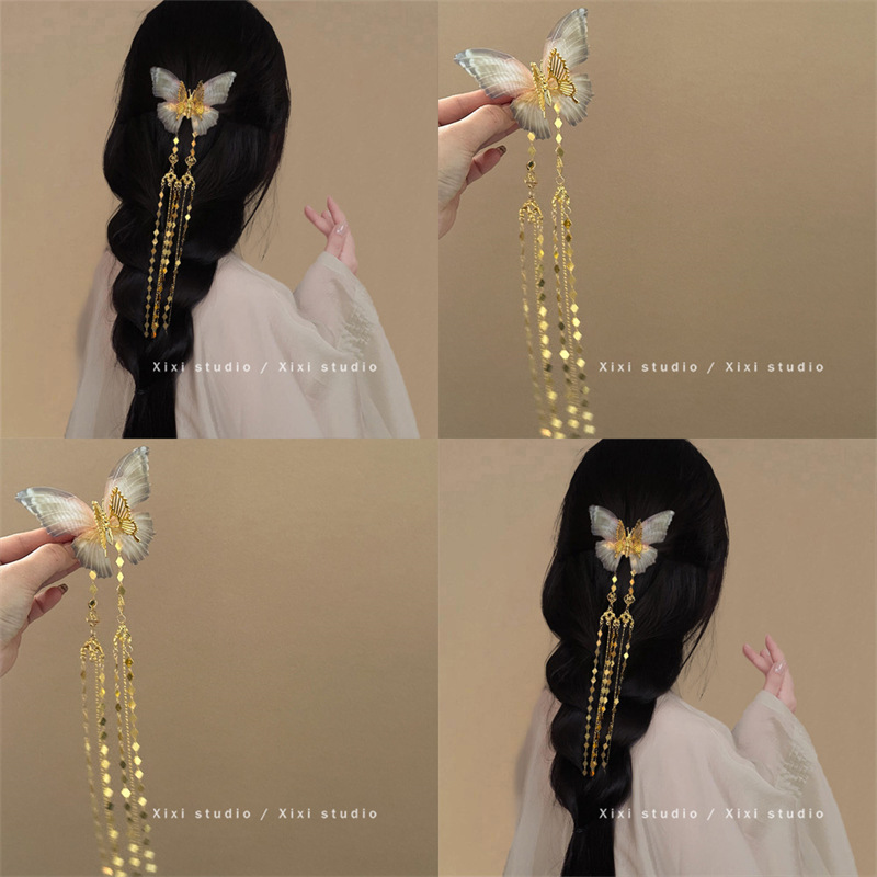 슈퍼 불멸의 Guofeng 나비 술 헤어 핀 새로운 중국 스타일 머리 꼰 덕빌 클립 Guofeng Hanfu 헤드웨어 깨진 머리핀스토어 가기