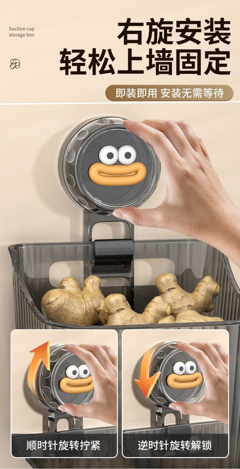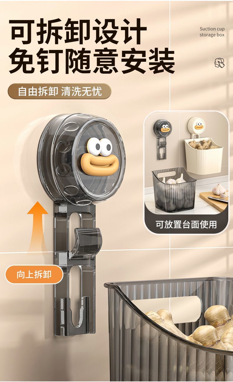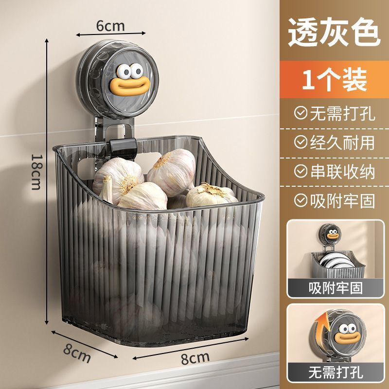 석션 컵 주방 가마, 생강 및 마늘 저장 상자 벽걸이 저장 랙 생강 및 마늘 숟가락 저장 바구니 펀치없는 교수형 바구니
