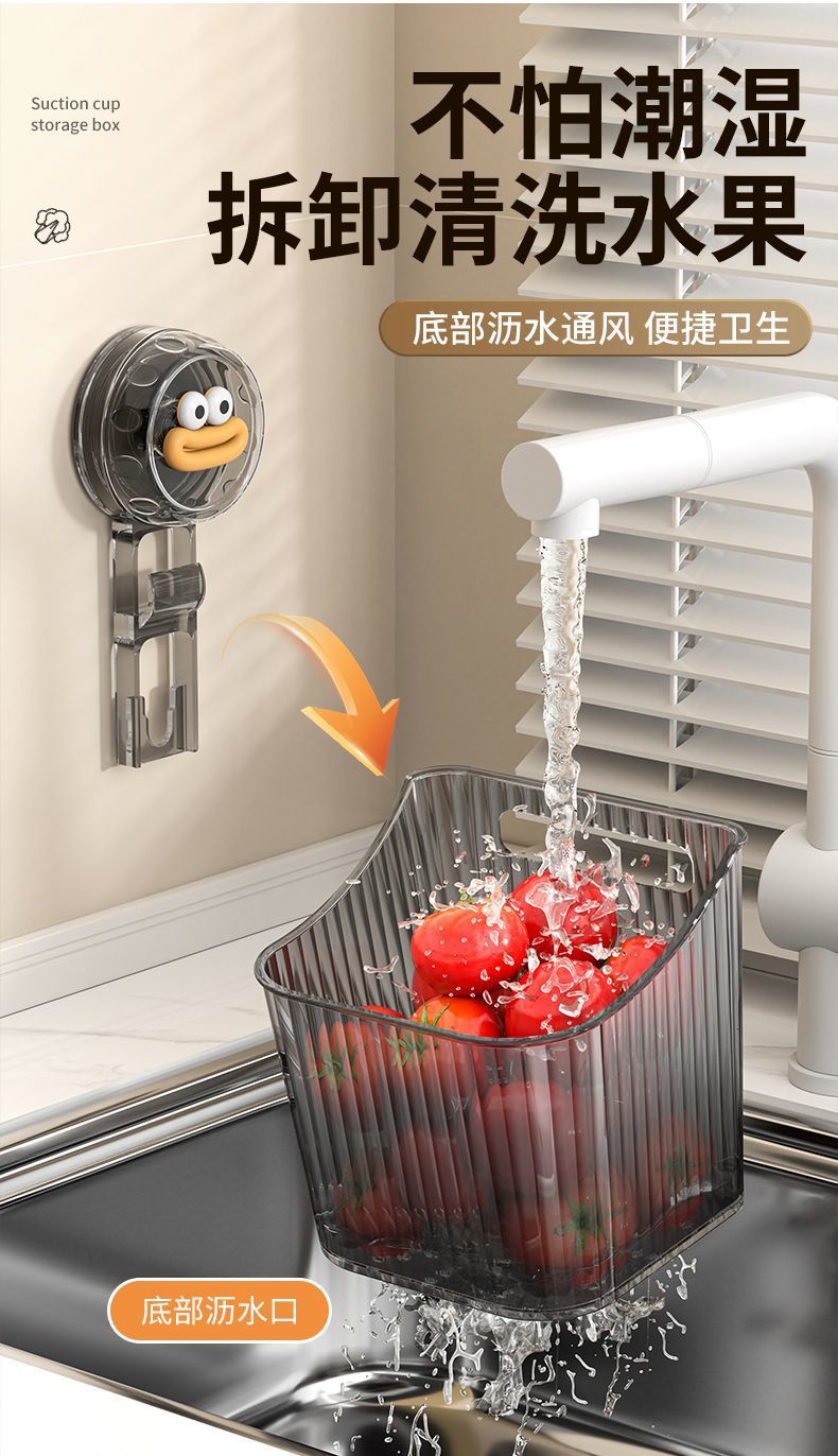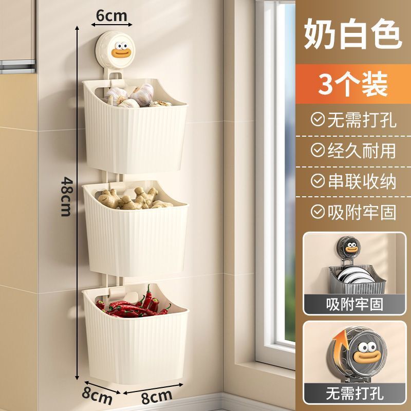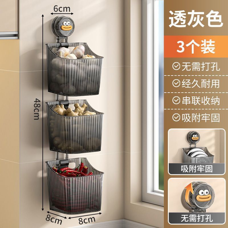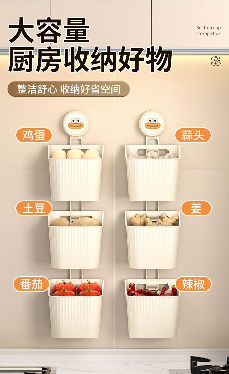 석션 컵 주방 가마, 생강 및 마늘 저장 상자 벽걸이 저장 랙 생강 및 마늘 숟가락 저장 바구니 펀치없는 교수형 바구니