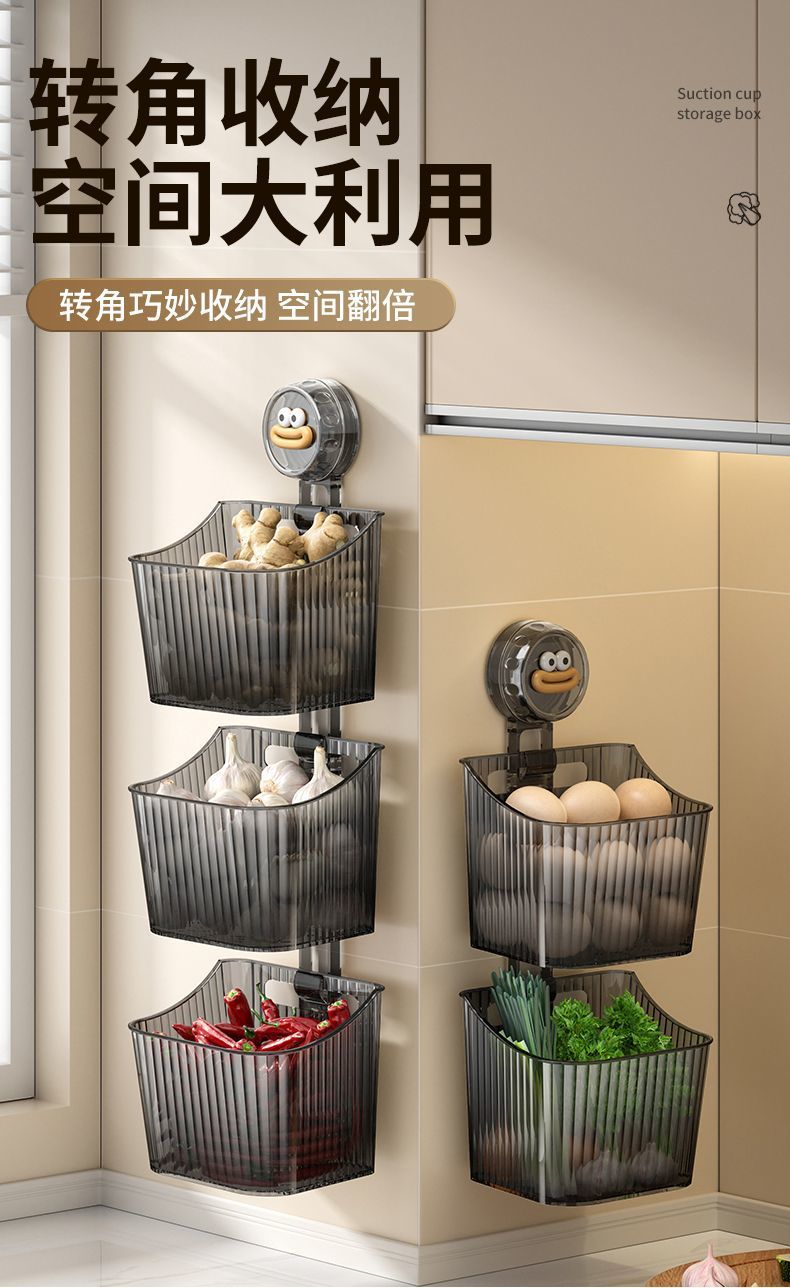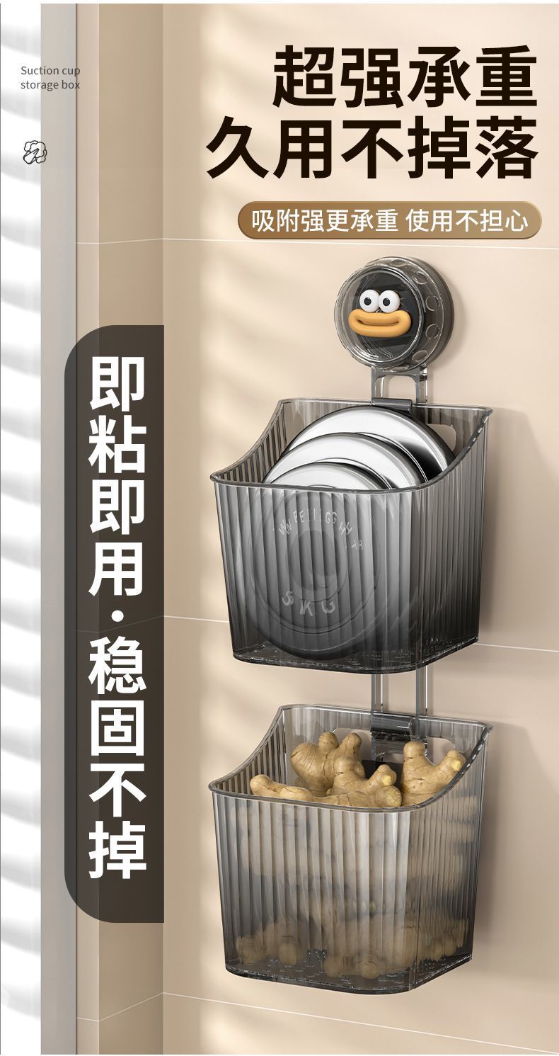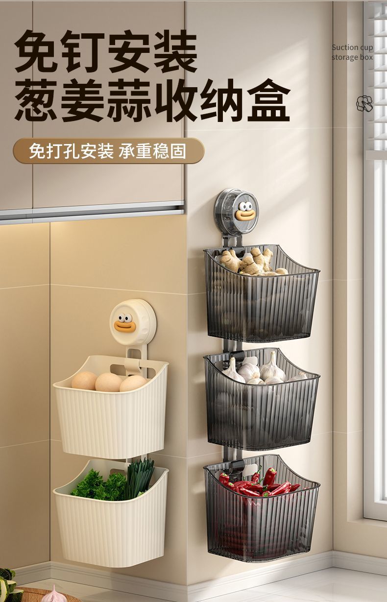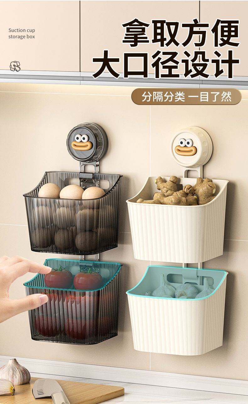 석션 컵 주방 가마, 생강 및 마늘 저장 상자 벽걸이 저장 랙 생강 및 마늘 숟가락 저장 바구니 펀치없는 교수형 바구니스토어 가기