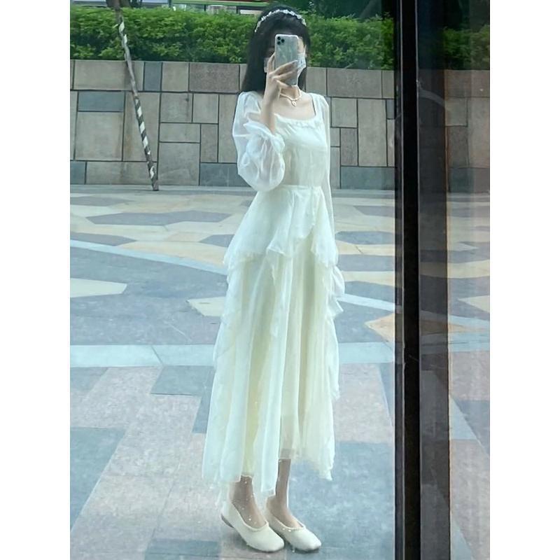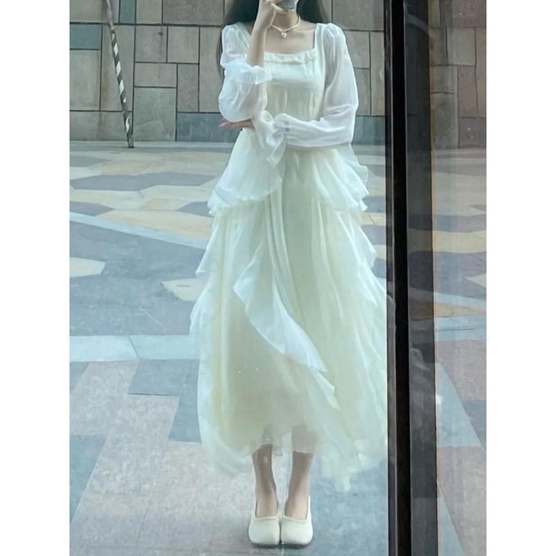 국경 2023 이른 가을 새로운 프랑스 긴팔 원피스 여성 틈새 디자인 따뜻하고 부드러운 모리 슈퍼 요정스토어 가기