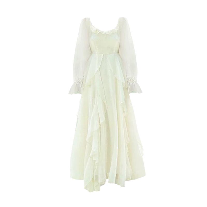 국경 2023 이른 가을 새로운 프랑스 긴팔 원피스 여성 틈새 디자인 따뜻하고 부드러운 모리 슈퍼 요정