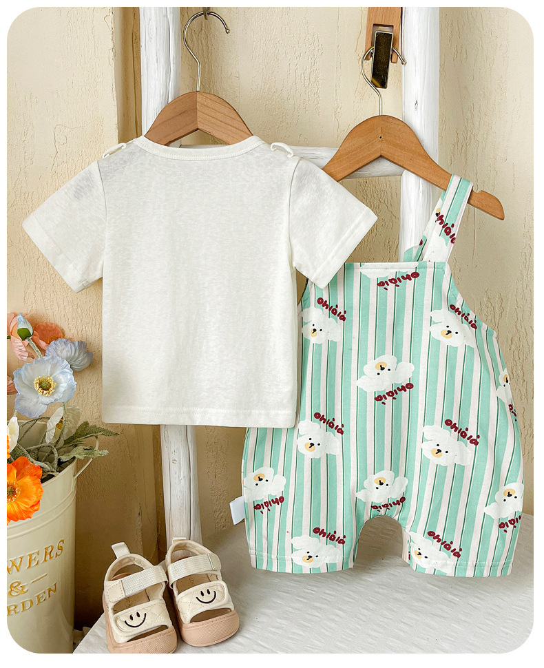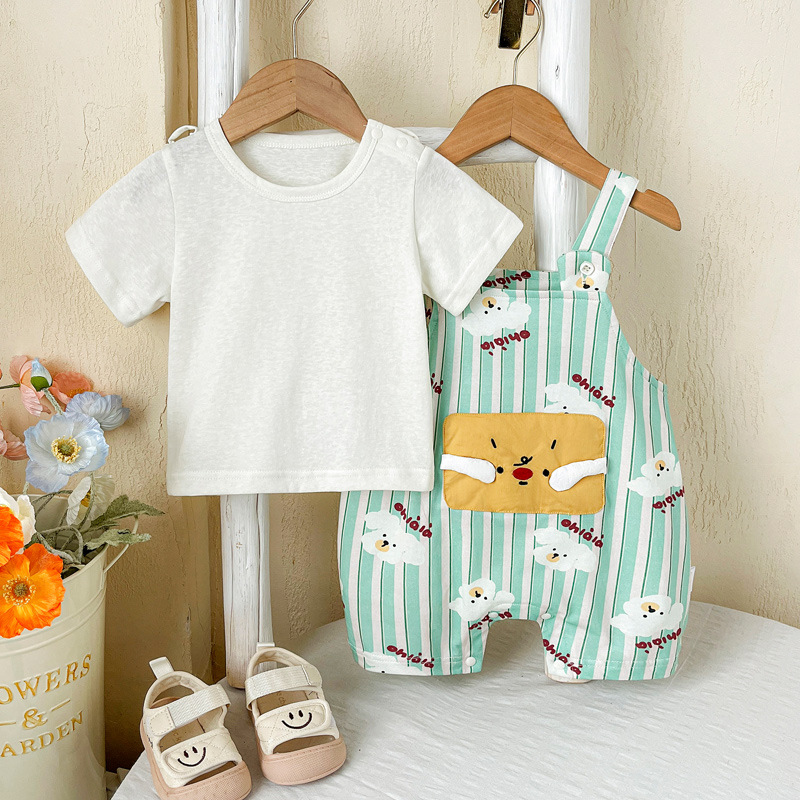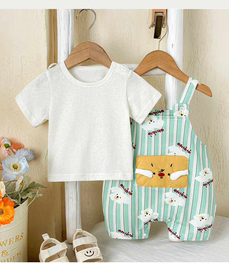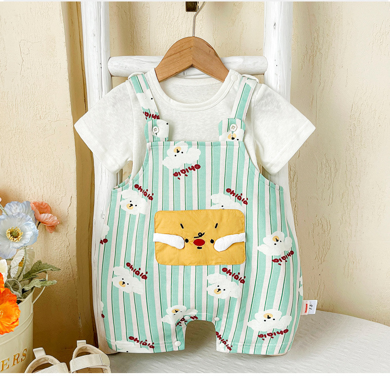 아기 옷 여름 짧은 소매 멜빵 두 조각 만화 귀여운 소년과 소녀 아기 여름 세트 나갑니다스토어 가기