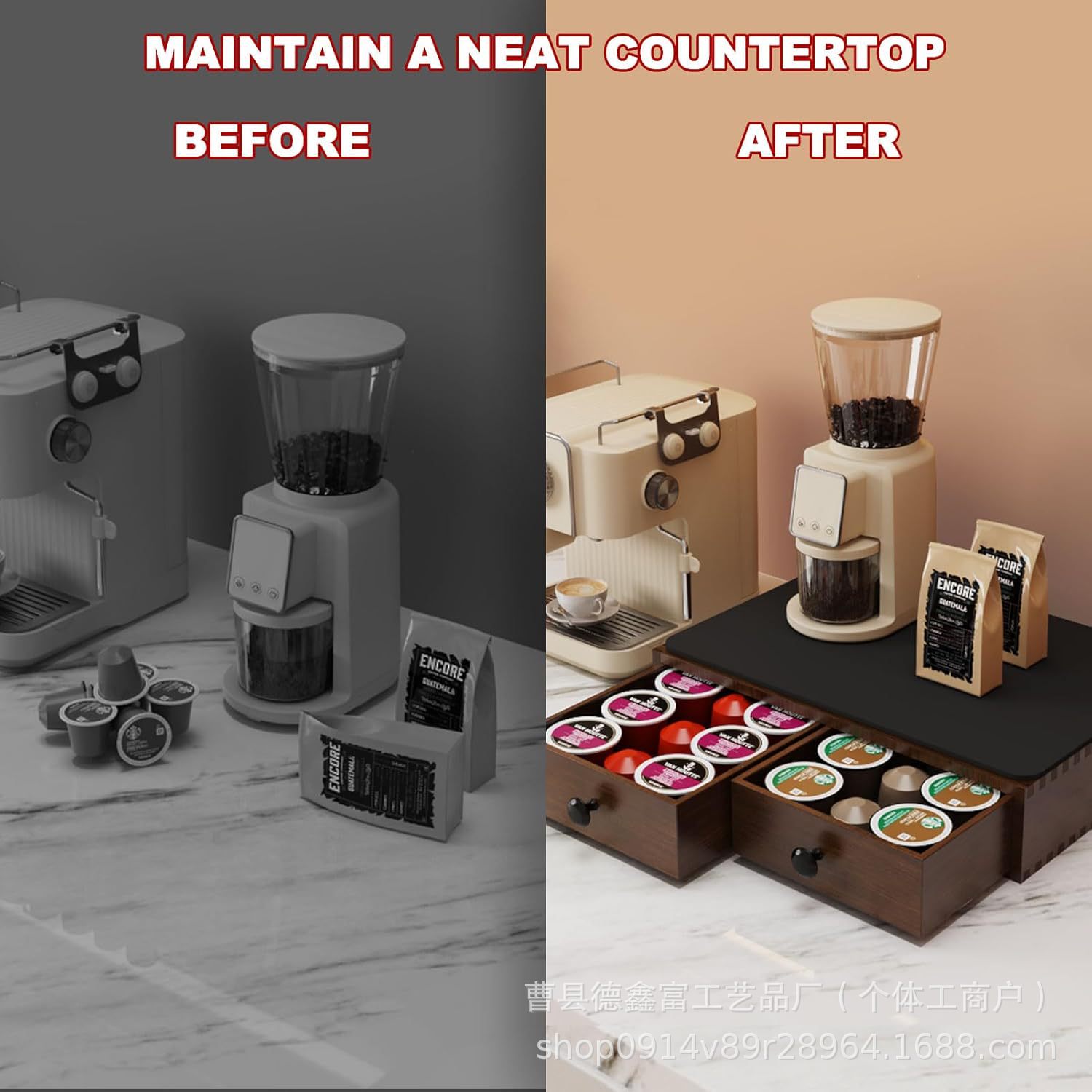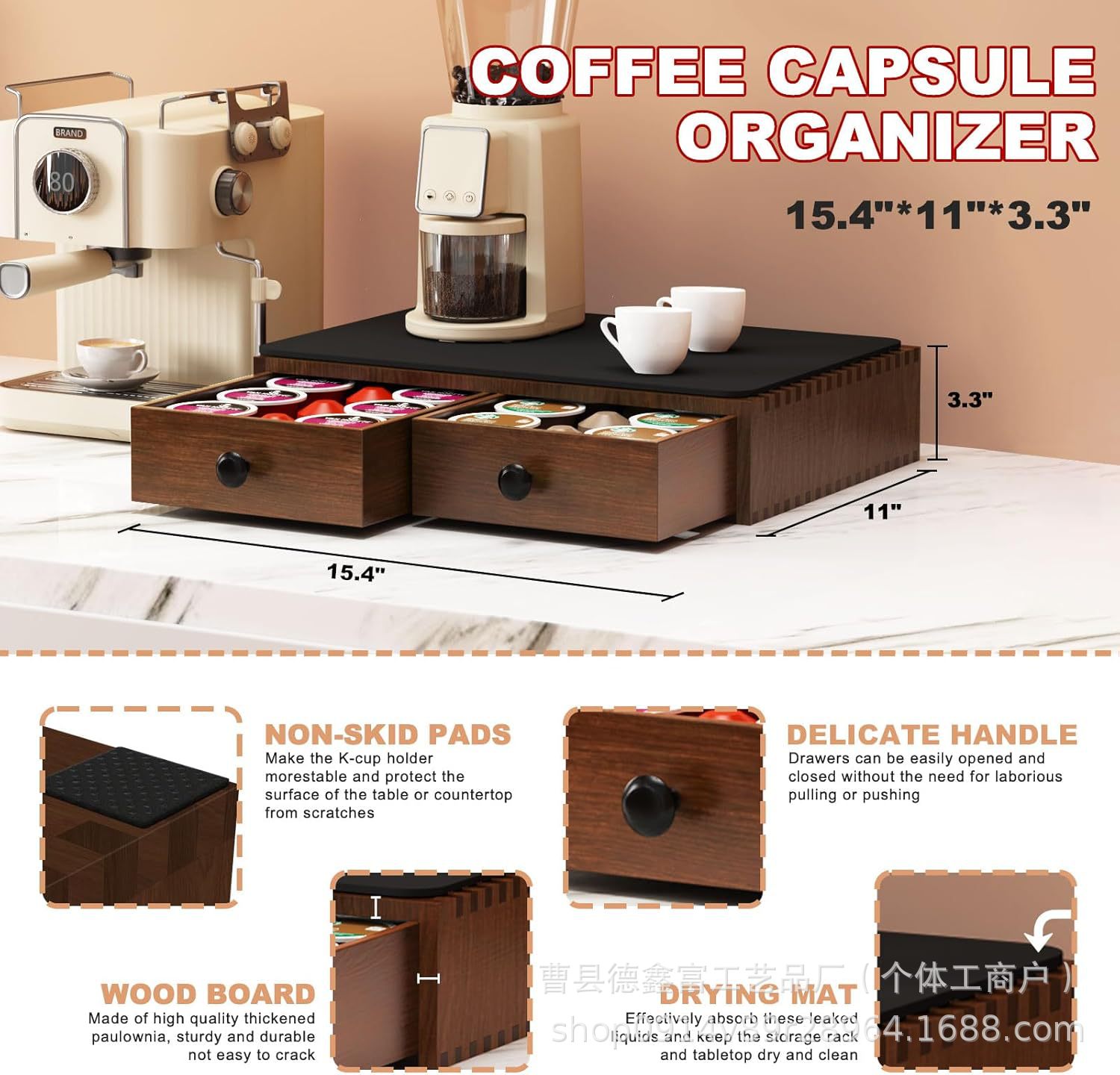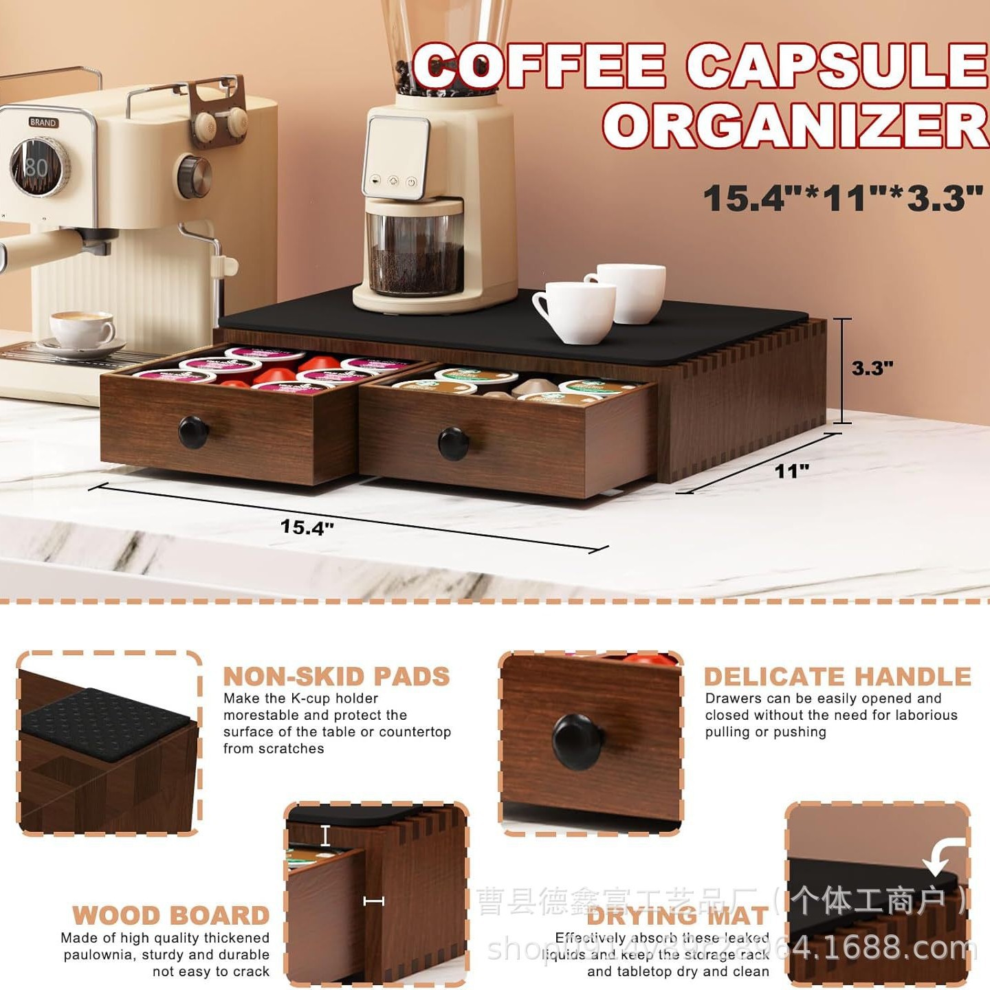 나무 커피 캡슐 보관 상자 티백 차 세트 보관 랙 서랍 커피 머신 홀더가있는 구획스토어 가기